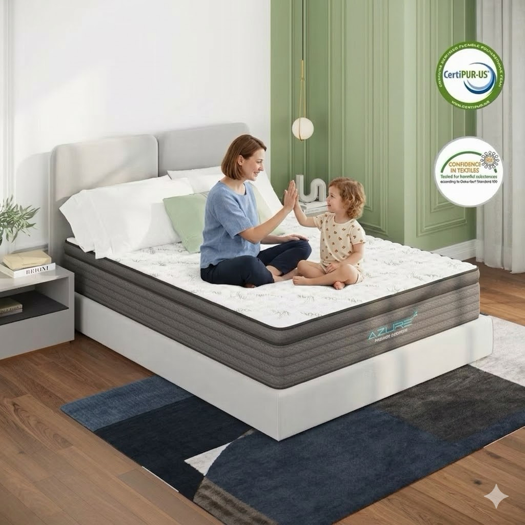 Azure™ Latex Hybrid, Plush Bamboo top | 10 Inch | Cooling Gel | Natural Latex | Pocket Spring Mattress.