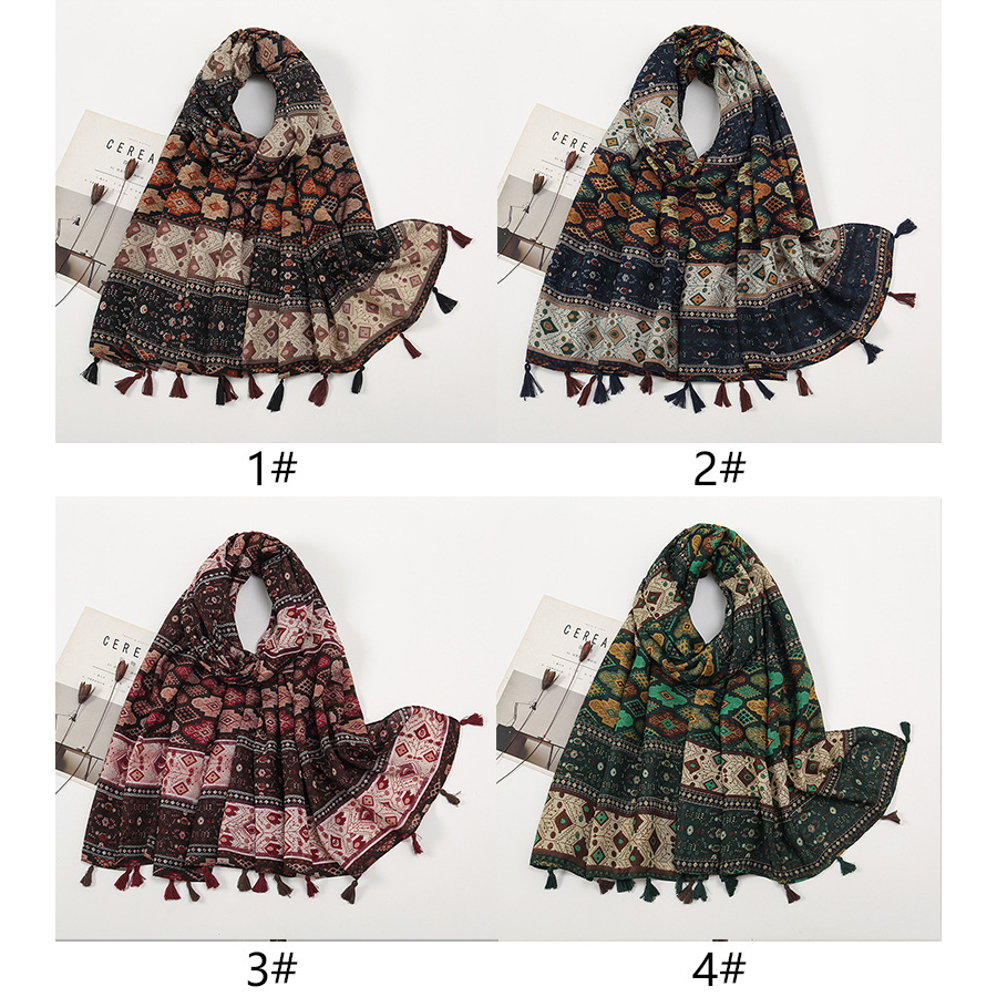 Jifang Vintage Retro Flower Prints Floral Cotton Voile Pashmina Shawls Head Scarf with long Tassels SL155