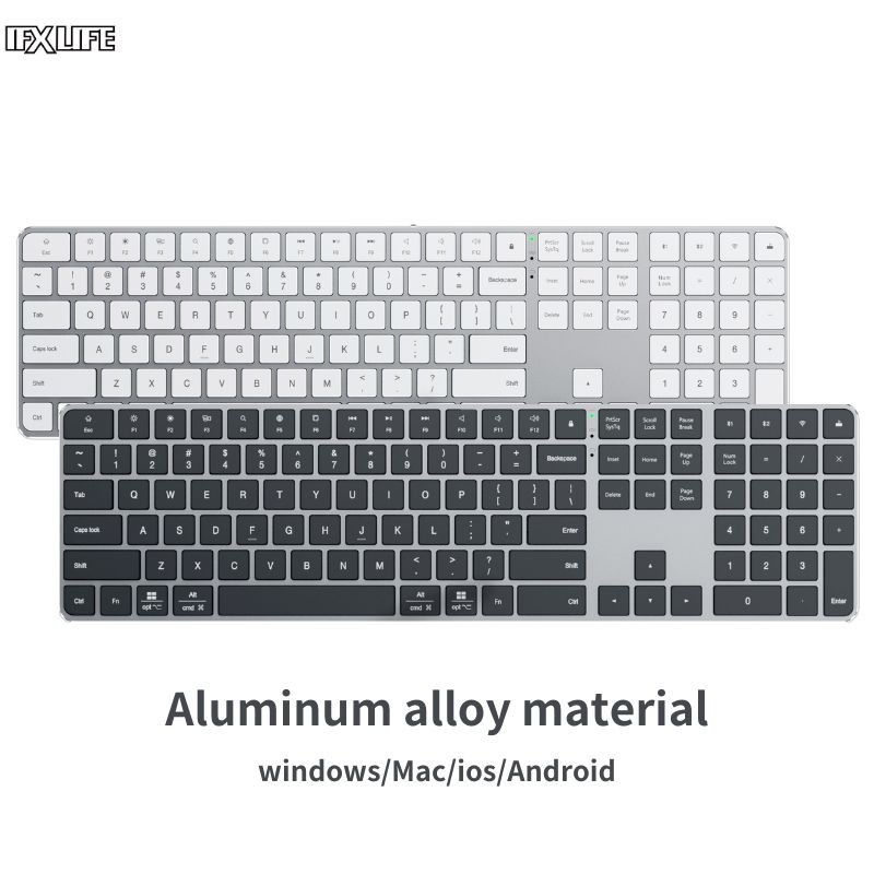 IFXLIFE Wireless Bluetooth Keyboard Rechargeable Metal Frame Slim Full Size Numeric Keys Office Keyboard Windows/PC/OSX