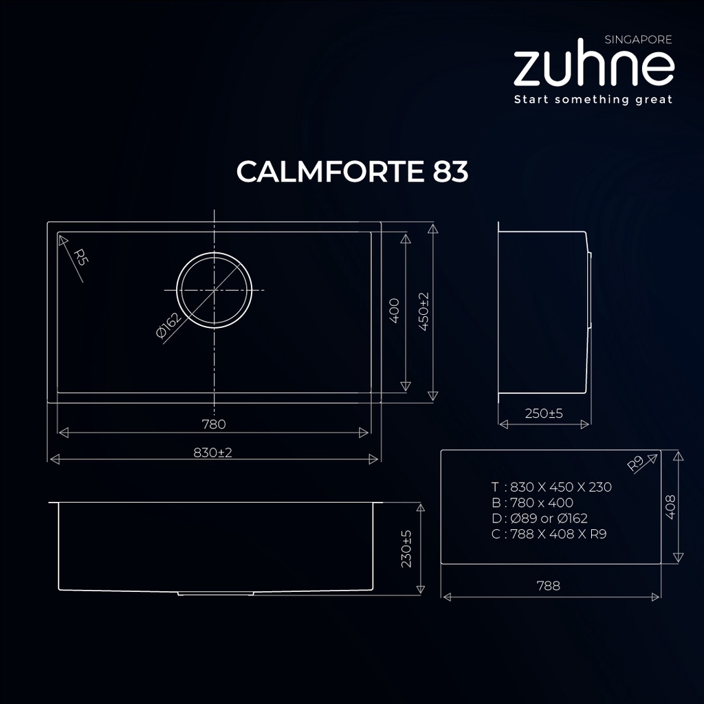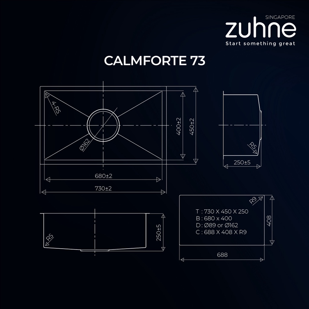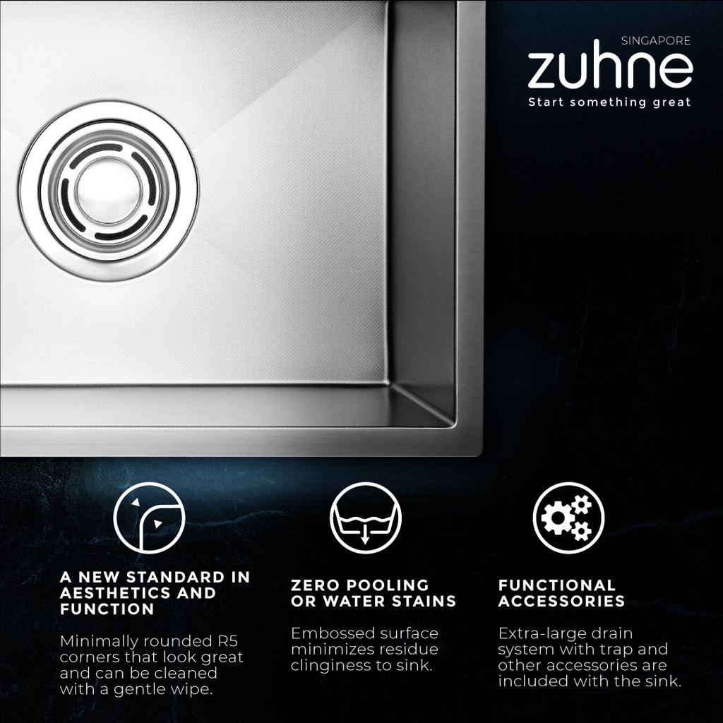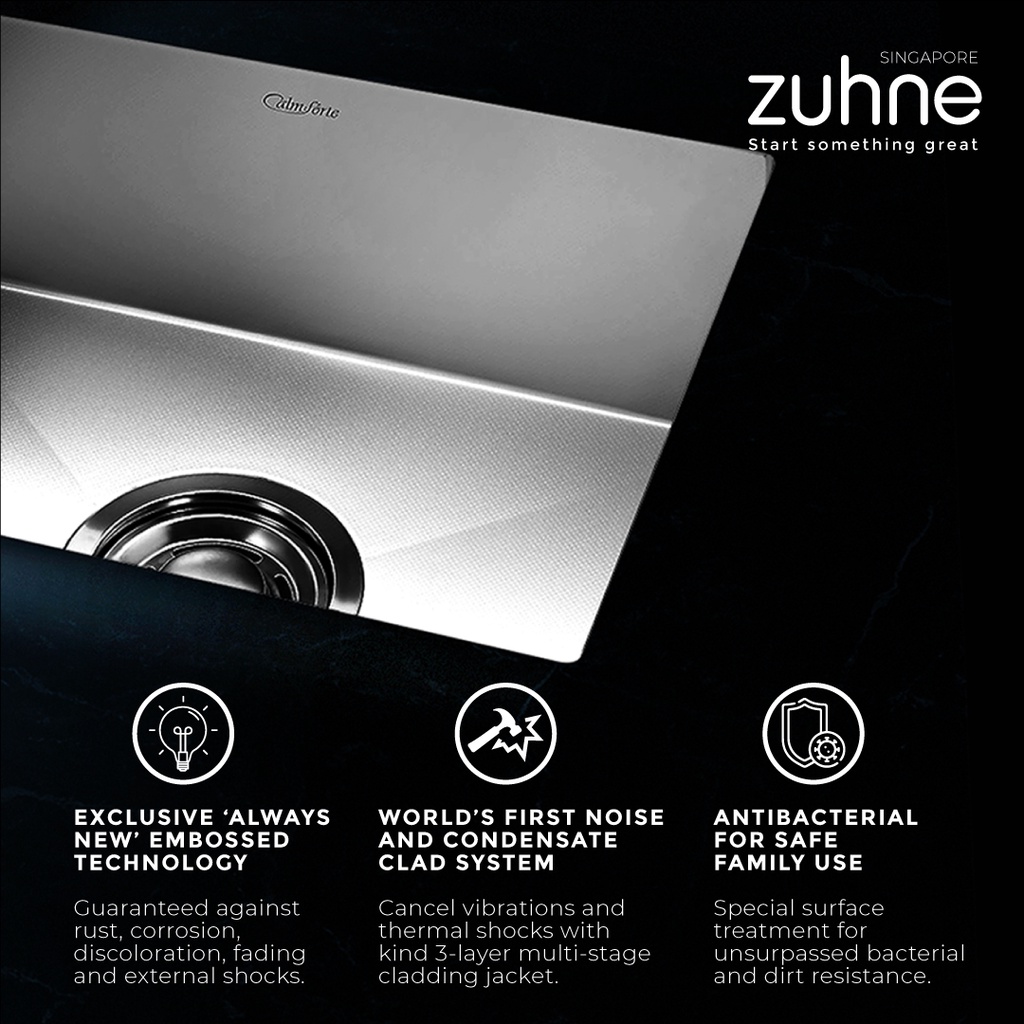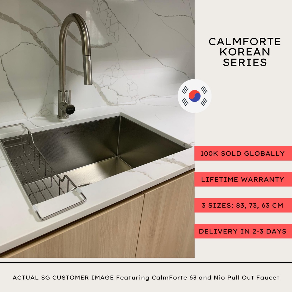 CalmForte Scratch Resistant Stainless Steel Single Bowl Kitchen Sink with Condensate Cancellation, Made in S. Korea