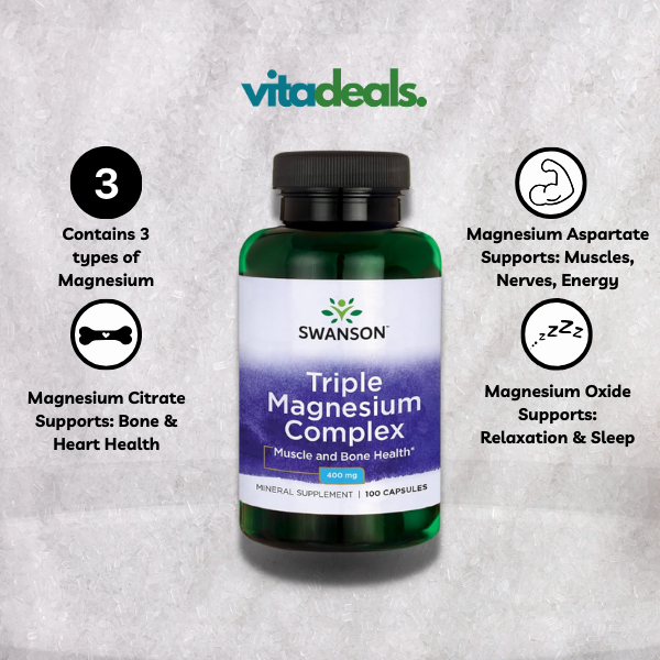 Swanson Triple Magnesium Complex, 100Caps – Health Supplement for Nerve, Muscle, Bone & Heart Health