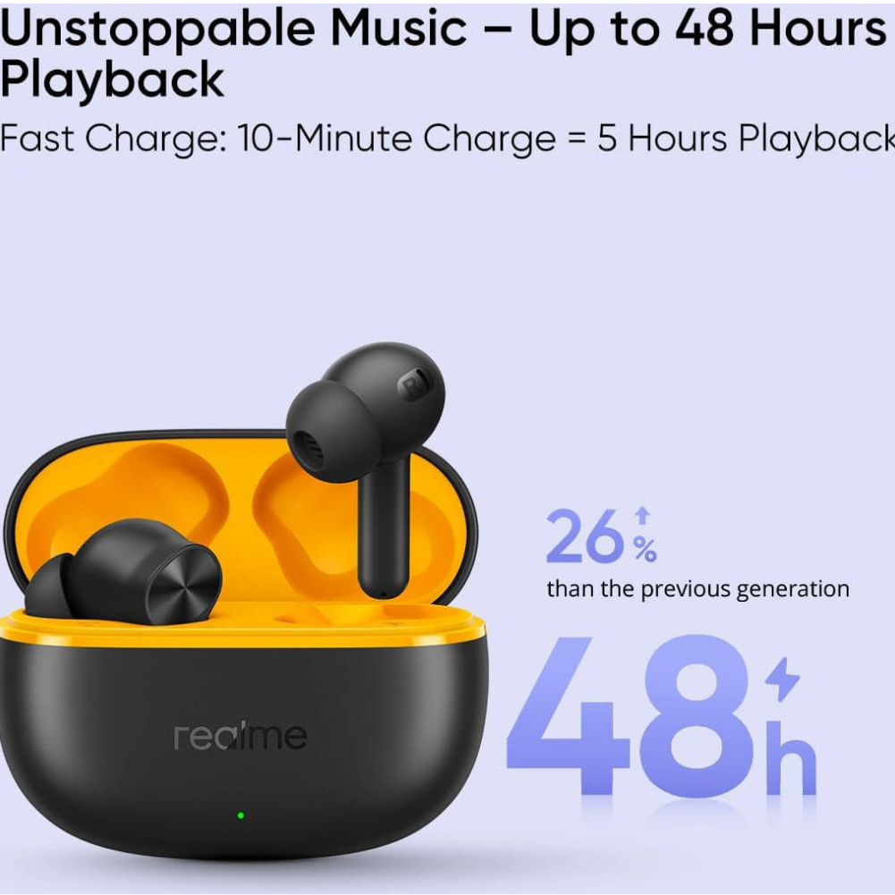 Realme Buds T200 Lite | 48 Hours Playback | Bluetooth 5.4 | IPX4 Water Resistance | AI ENC Noise Cancellation for Calls