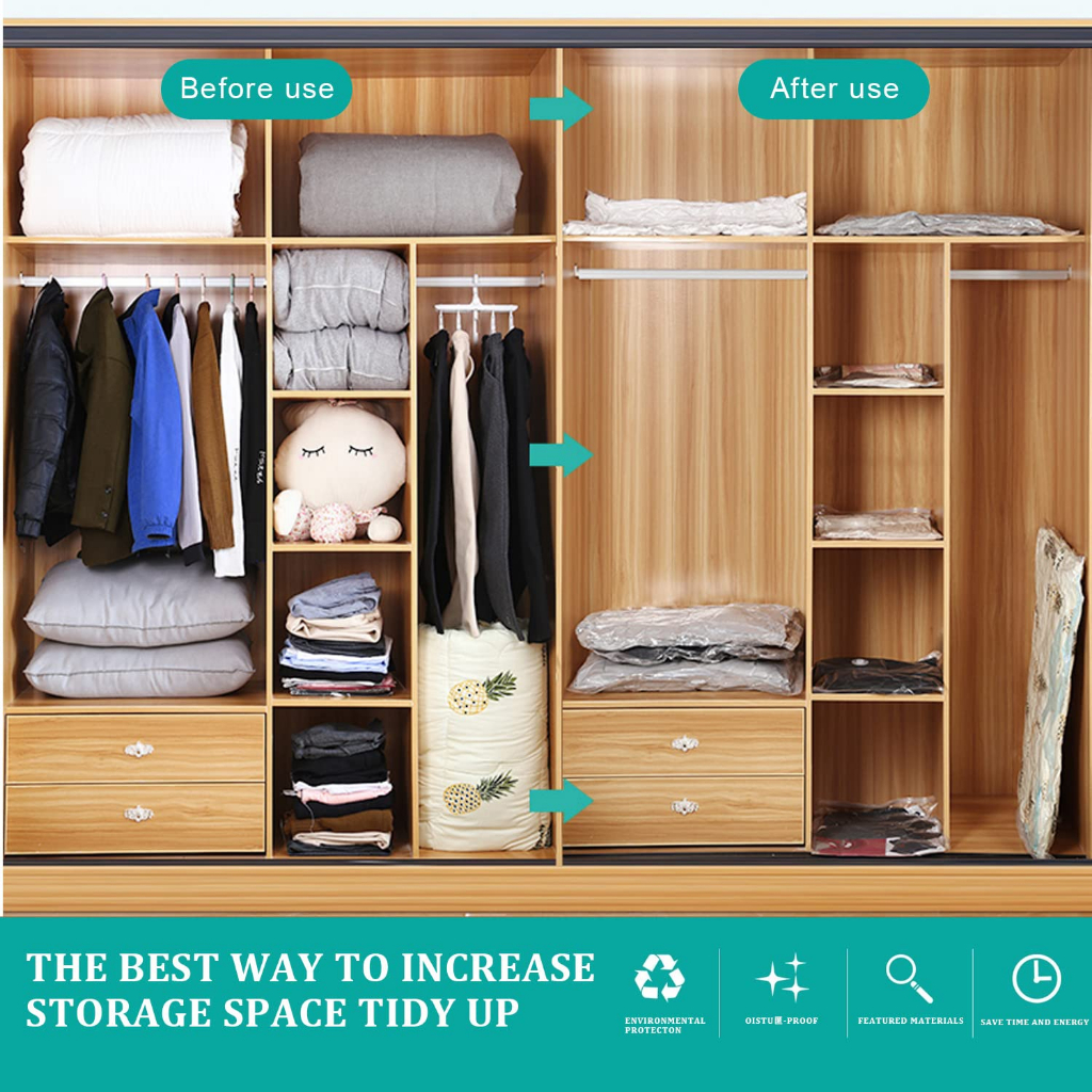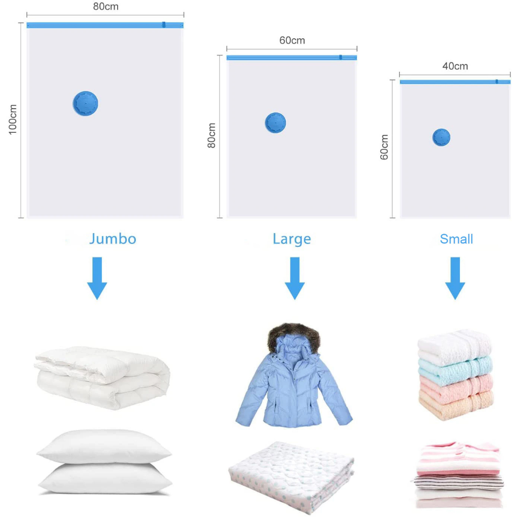 Durable Vacuum Storage Bags, Space Saver Sealer Compression Bags for Blankets, Comforters, Pillows, Clothes Storage