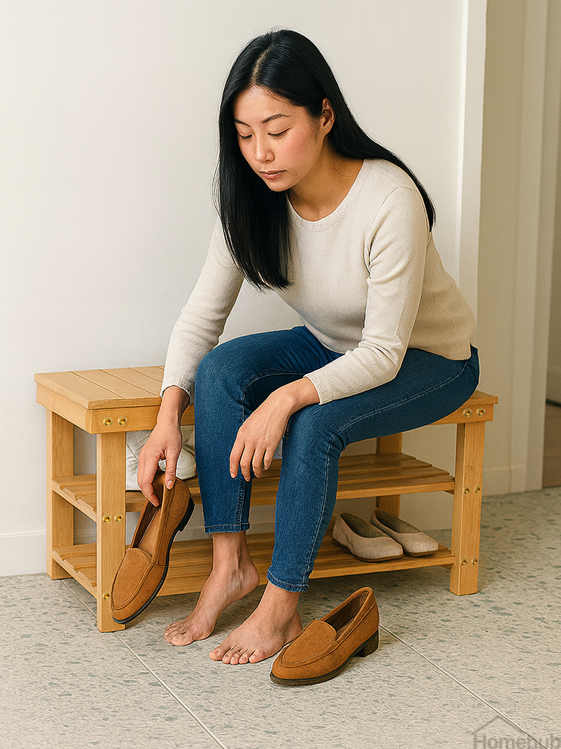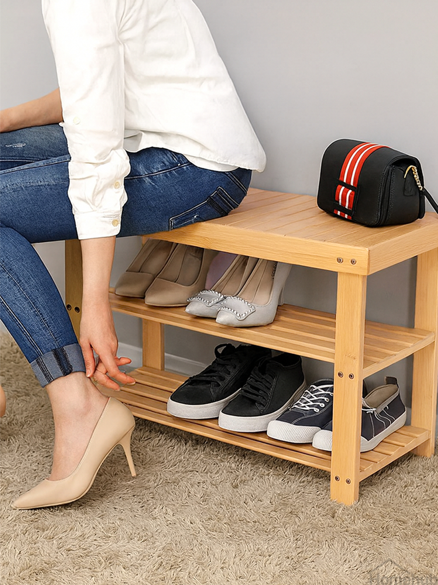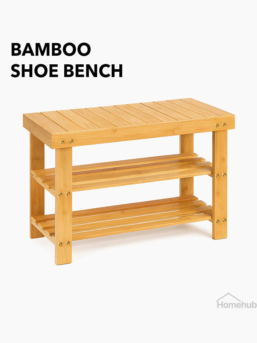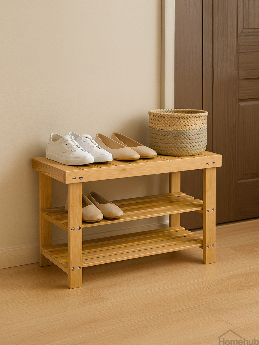 Homehub Bamboo Shoe Bench Rack With Seat Outdoor Changing Stool Corridor Hallway Entryway Shoes HDB