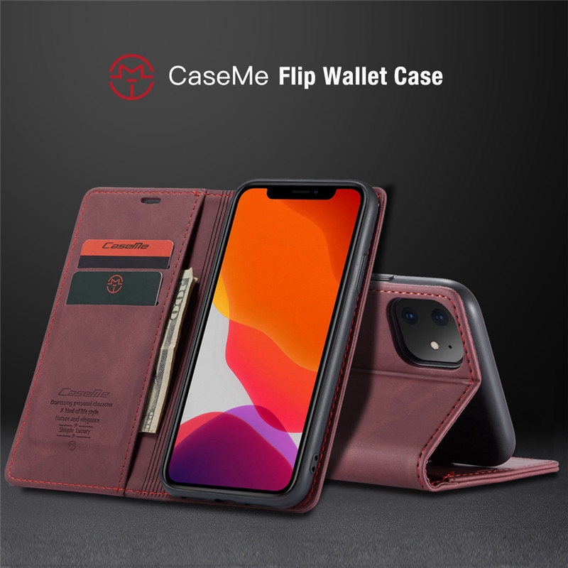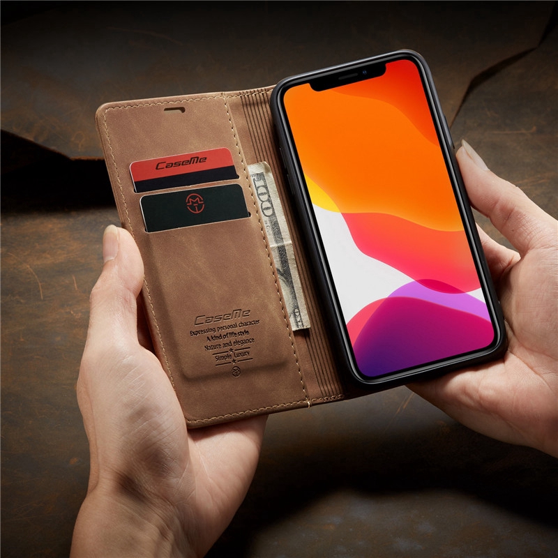 CaseMe Brand for iPhone 12 11 Pro XS Max XR X SE 2020 8 7 6 Plus Brown Flip Stand Phone Leather Wallet Cover Case Casing