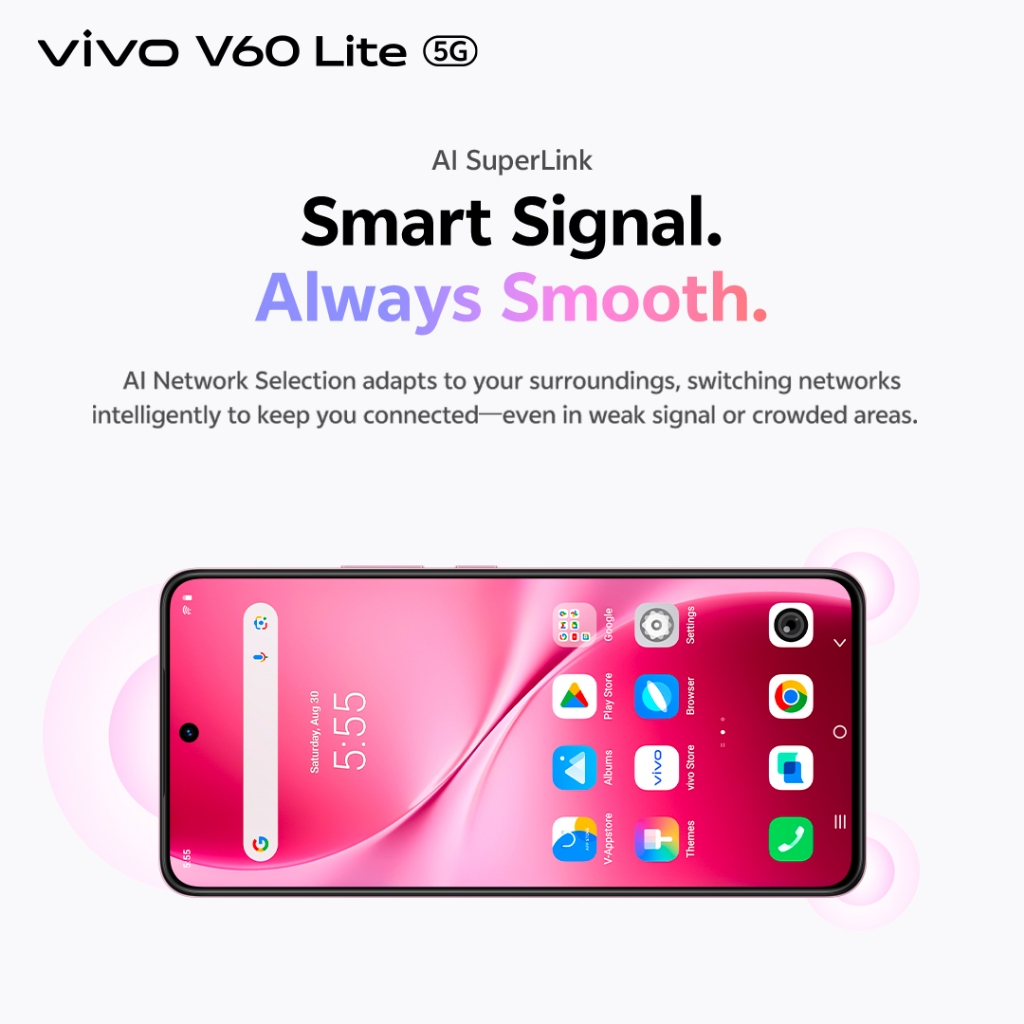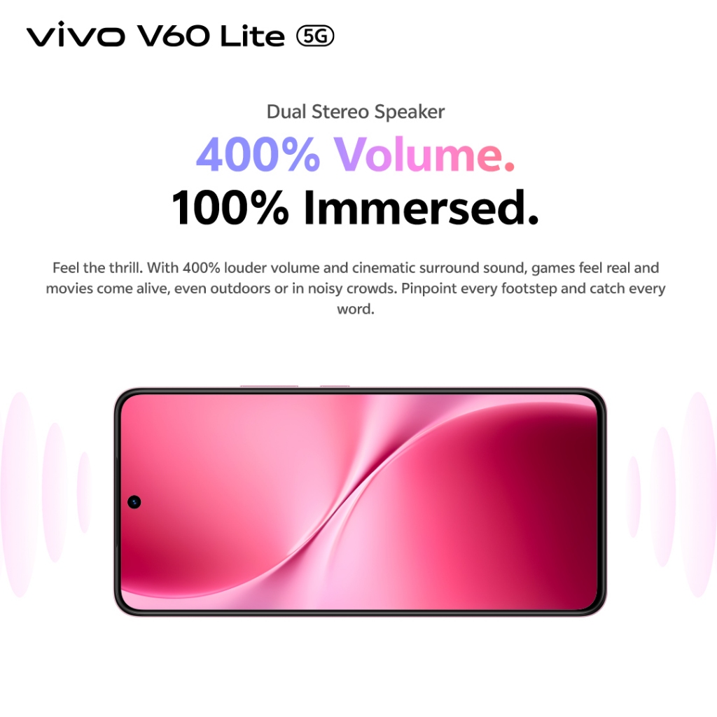 vivo V60 Lite 5G 12+12GB Extended RAM + 512GB | Dimensity 7360-Turbo | 6500 mAh | 400% Boosted Volume | 2 Years Warranty