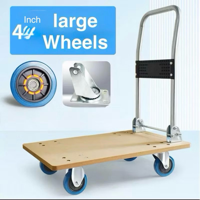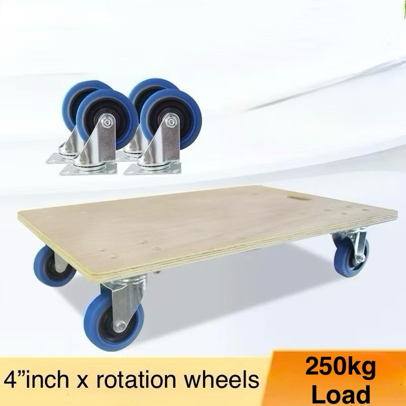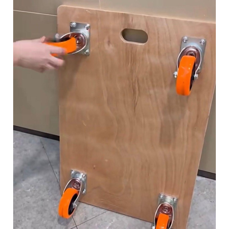 (🇸🇬SG shop) Wooden Platform Dolly Rubber Wheels Wood trolley fixed directional castor wheels with Built-in Carry Handle