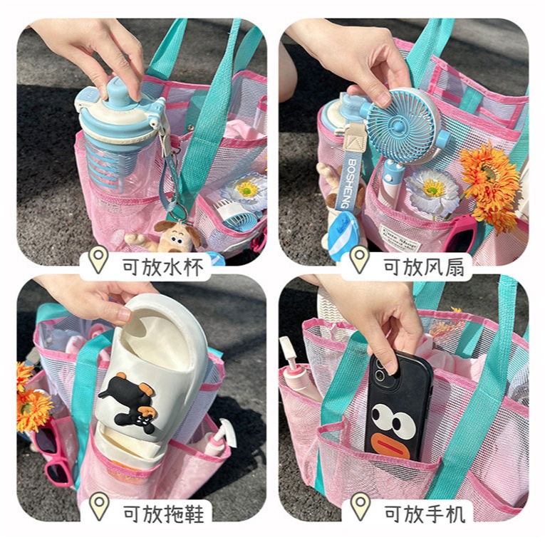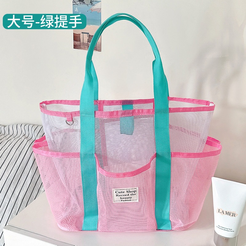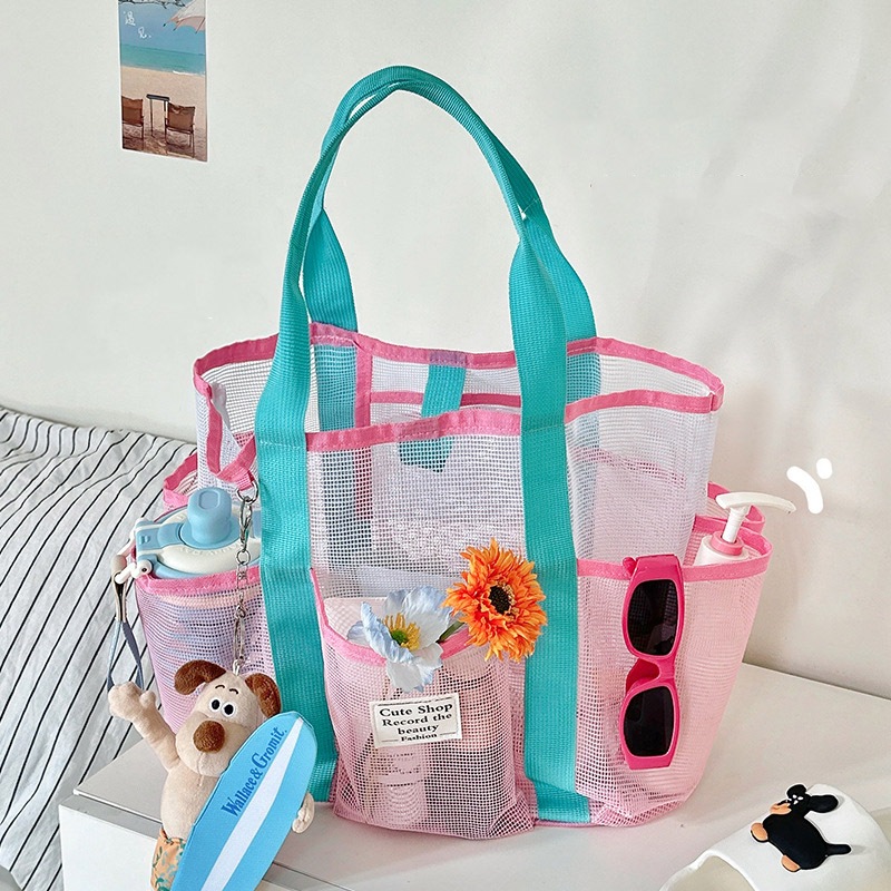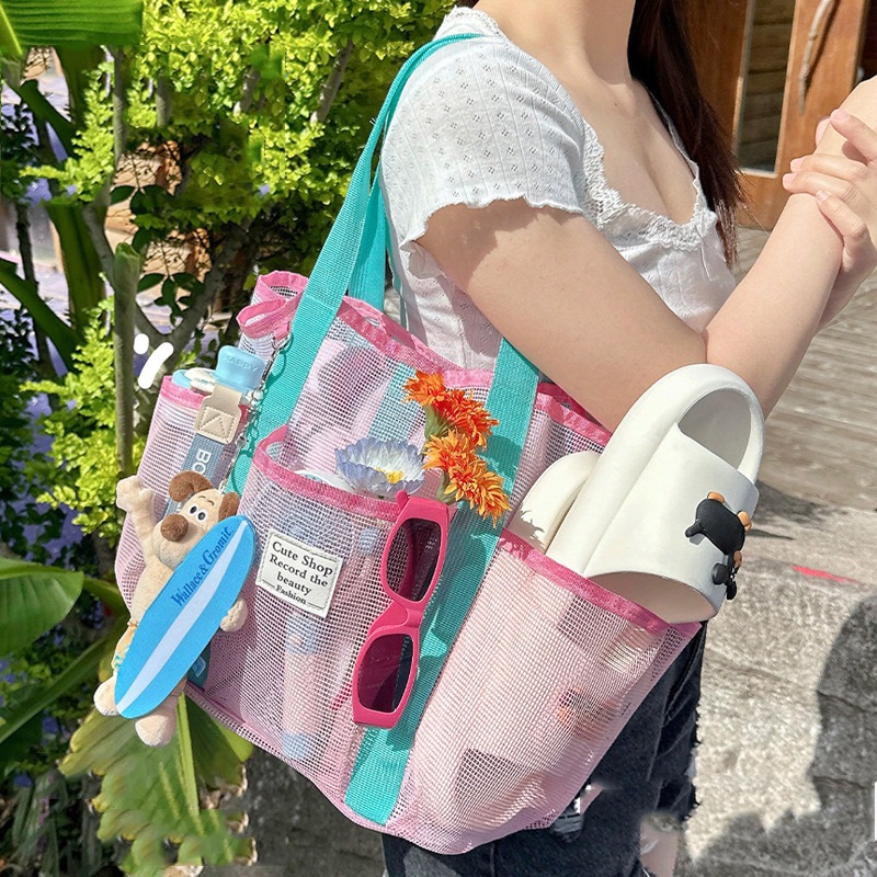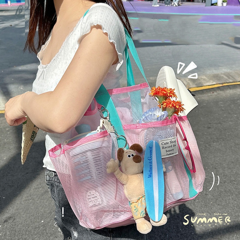 Large Capacity Women Bag Transparent Mesh Shoulder Bag Portable Storage Bags Summer Beach Bag Travel Mesh Net Tote Handbag