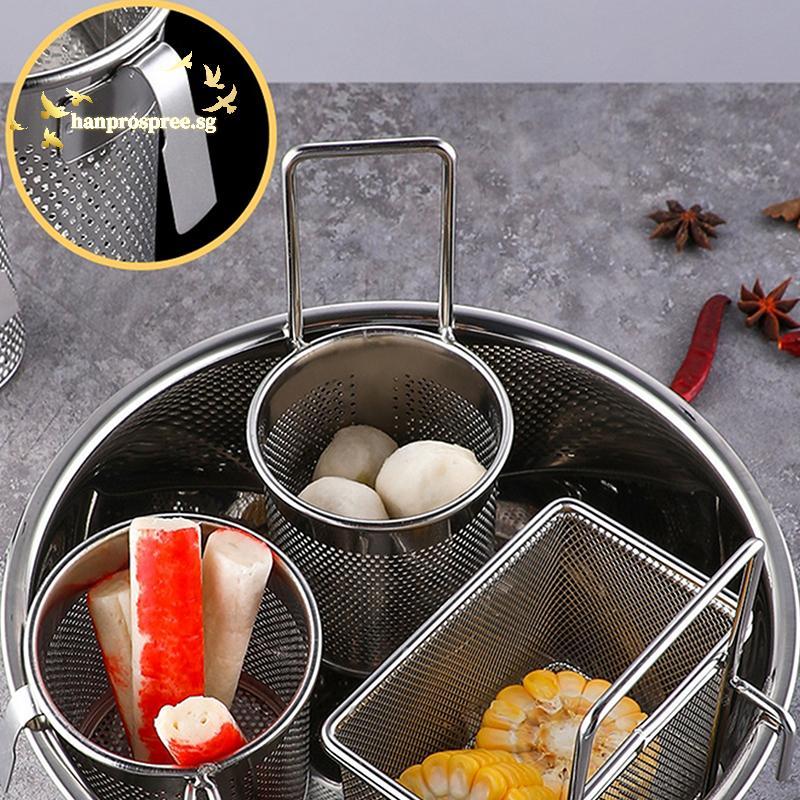 [Han-t] 304 Stainless Steel Deep Frying Basket Silver Multi-functional Hangable Colander Oil Filter Mesh Sieve Hotpot Strainer Mesh well