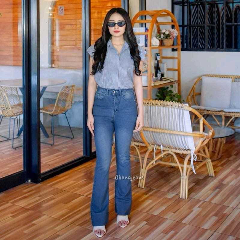 Jennie Cutbray Jeans Highwaist Folds Big Legs Women's Stretch Jeans
