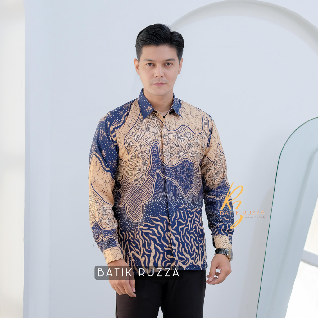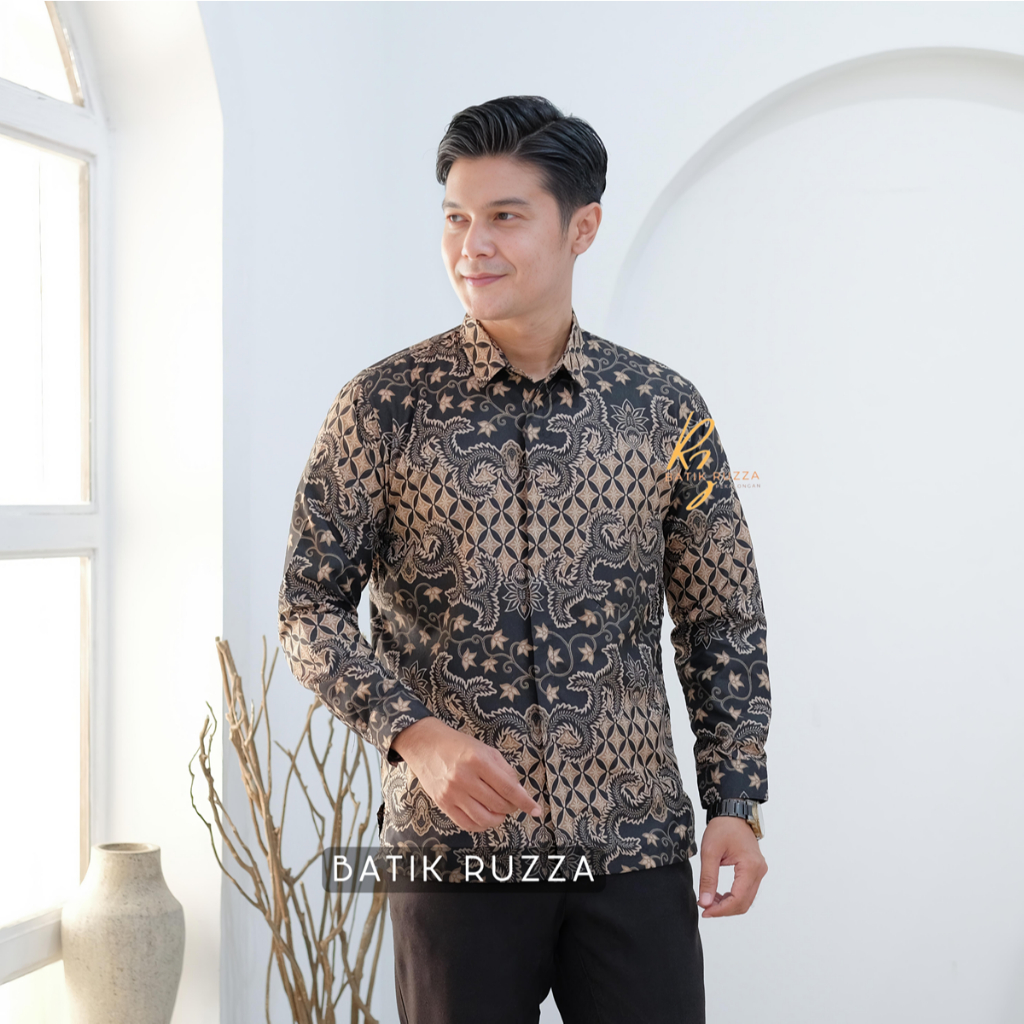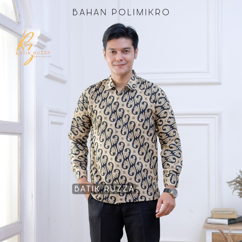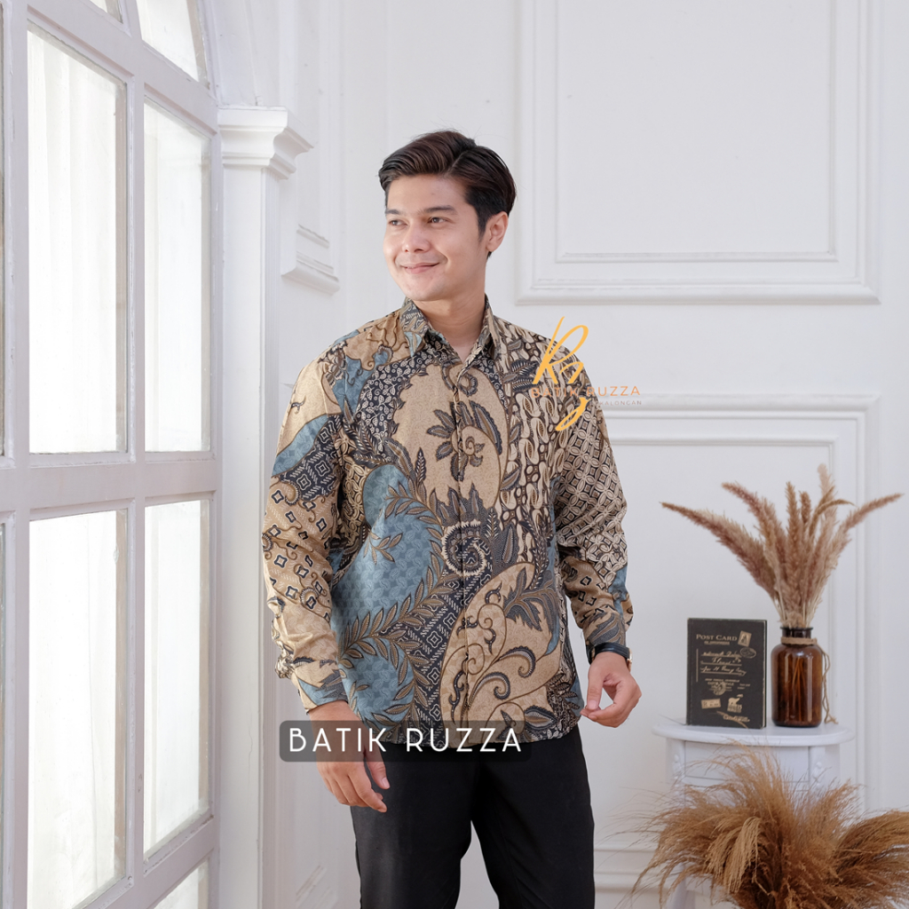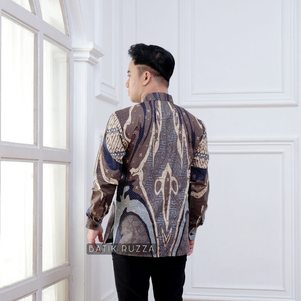 KEMEJA RUZZA Men's Long Sleeve Batik Shirt with Sogan Murai Motif Size ML XL Batik Shirt for Men