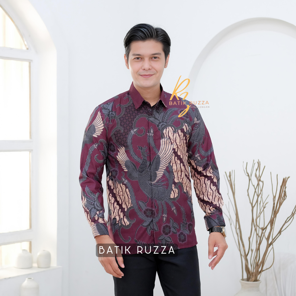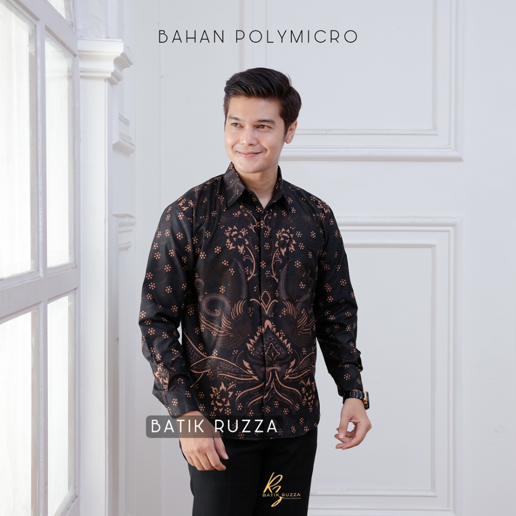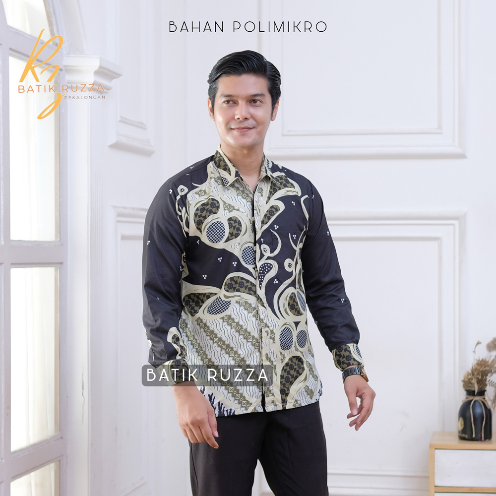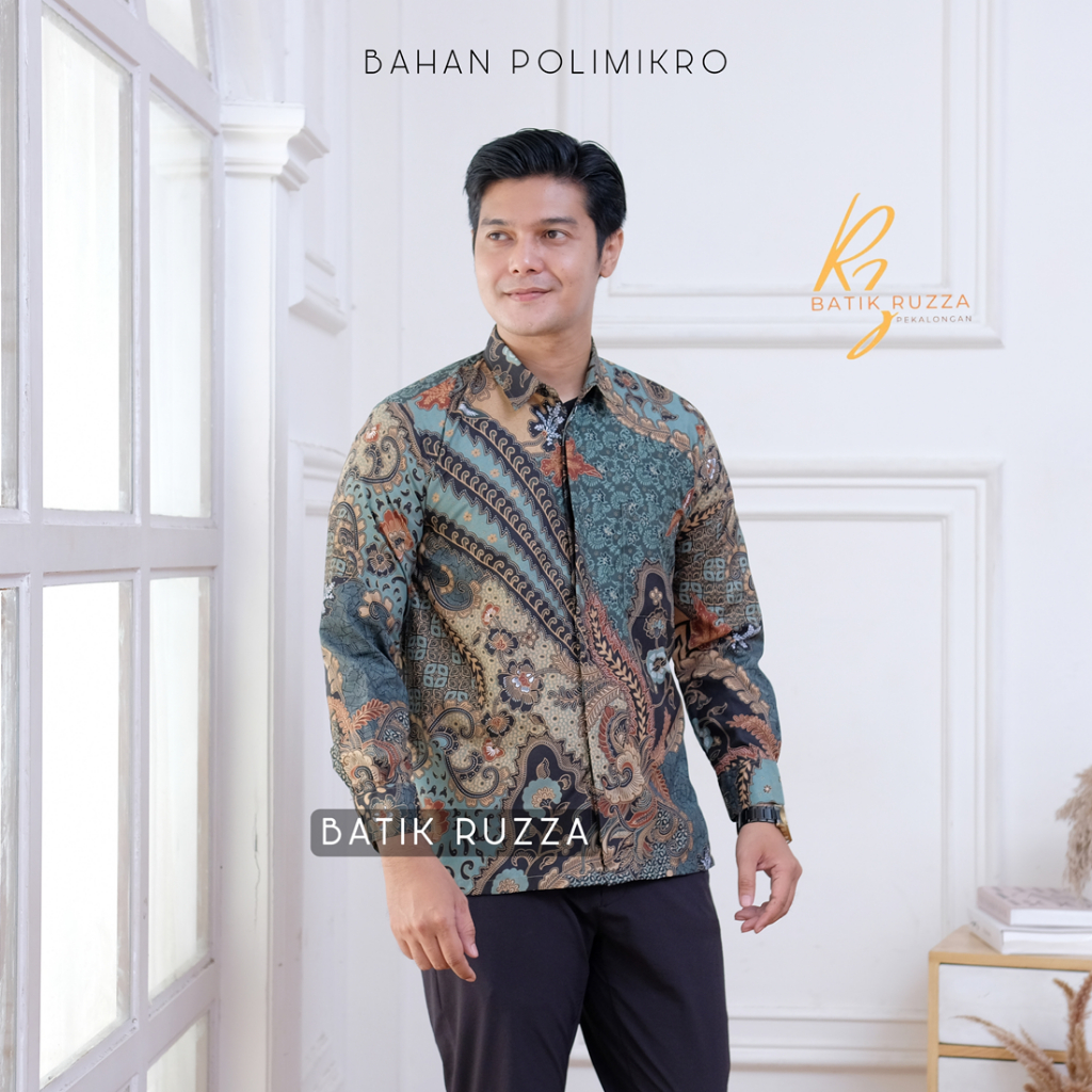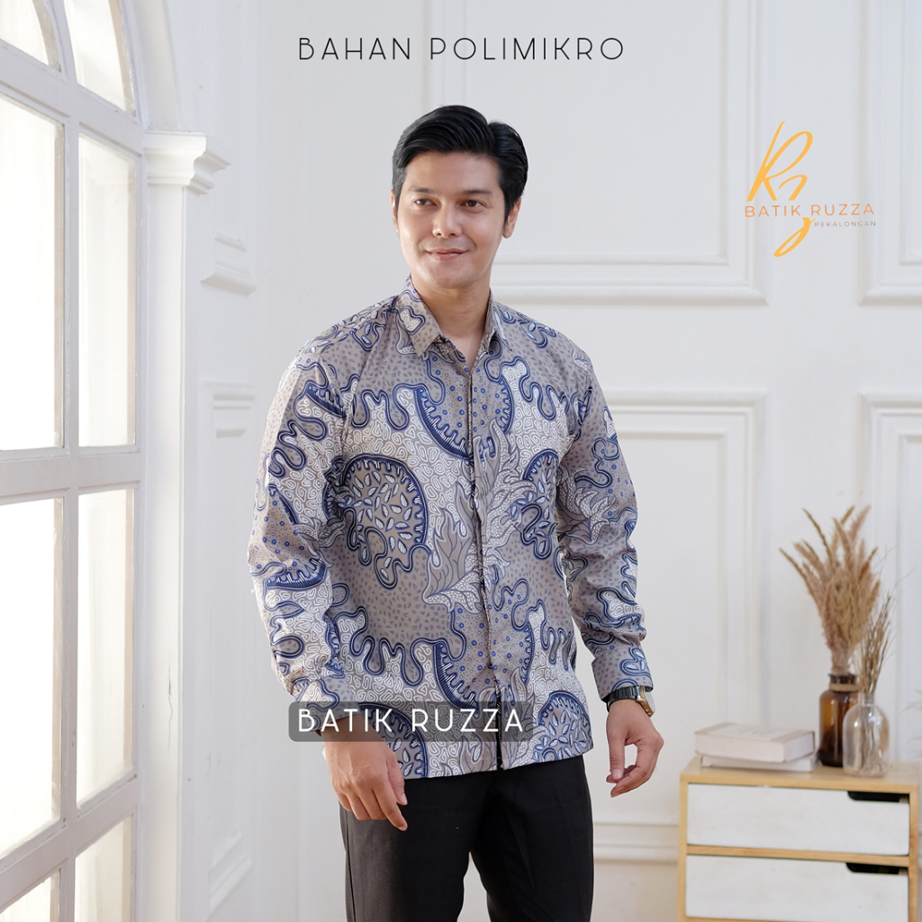 KEMEJA RUZZA Men's Long Sleeve Batik Shirt with Sogan Murai Motif Size ML XL Batik Shirt for Men