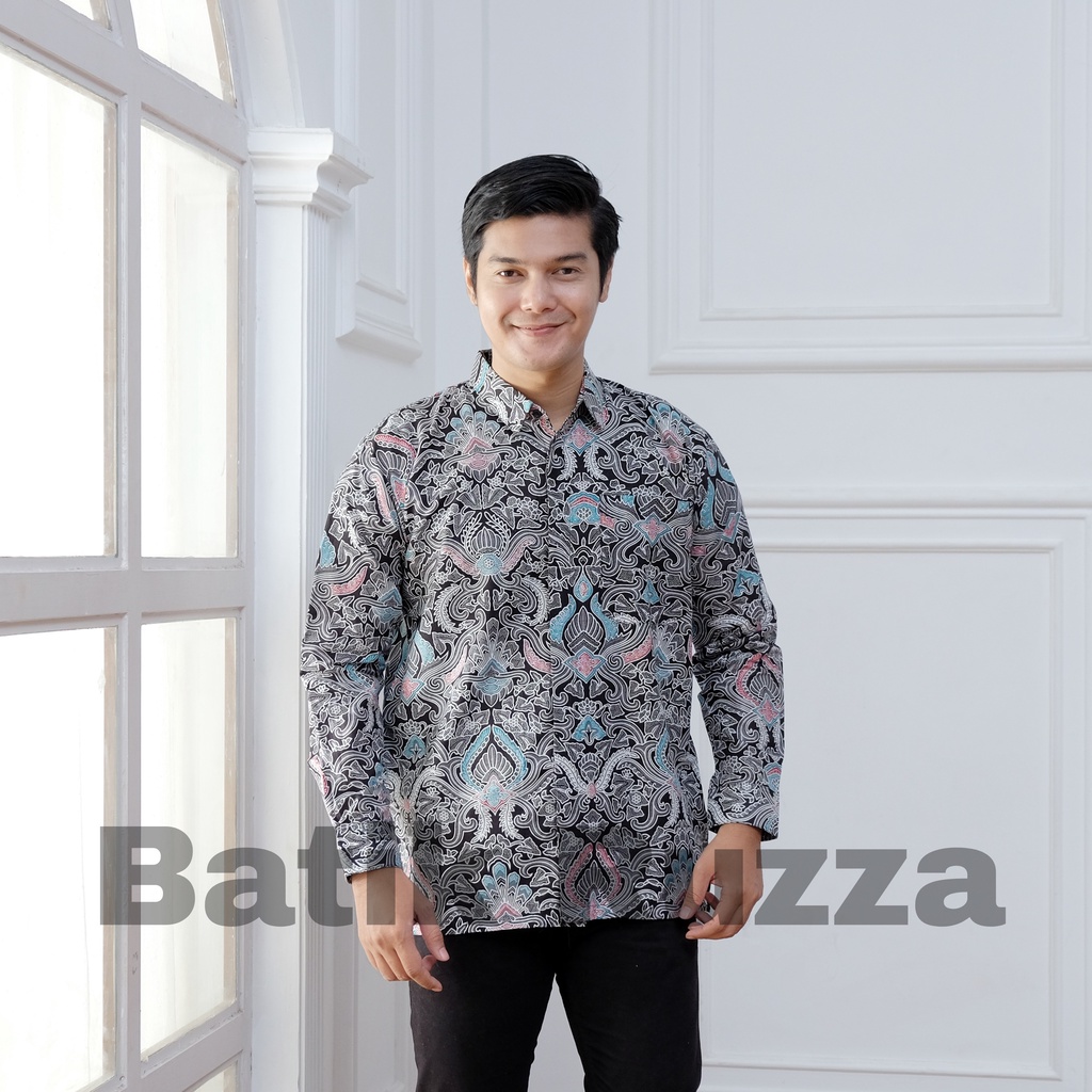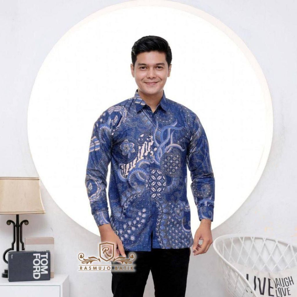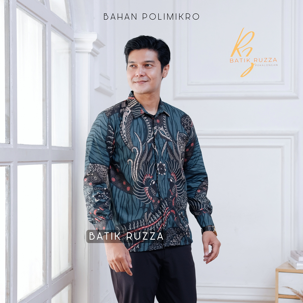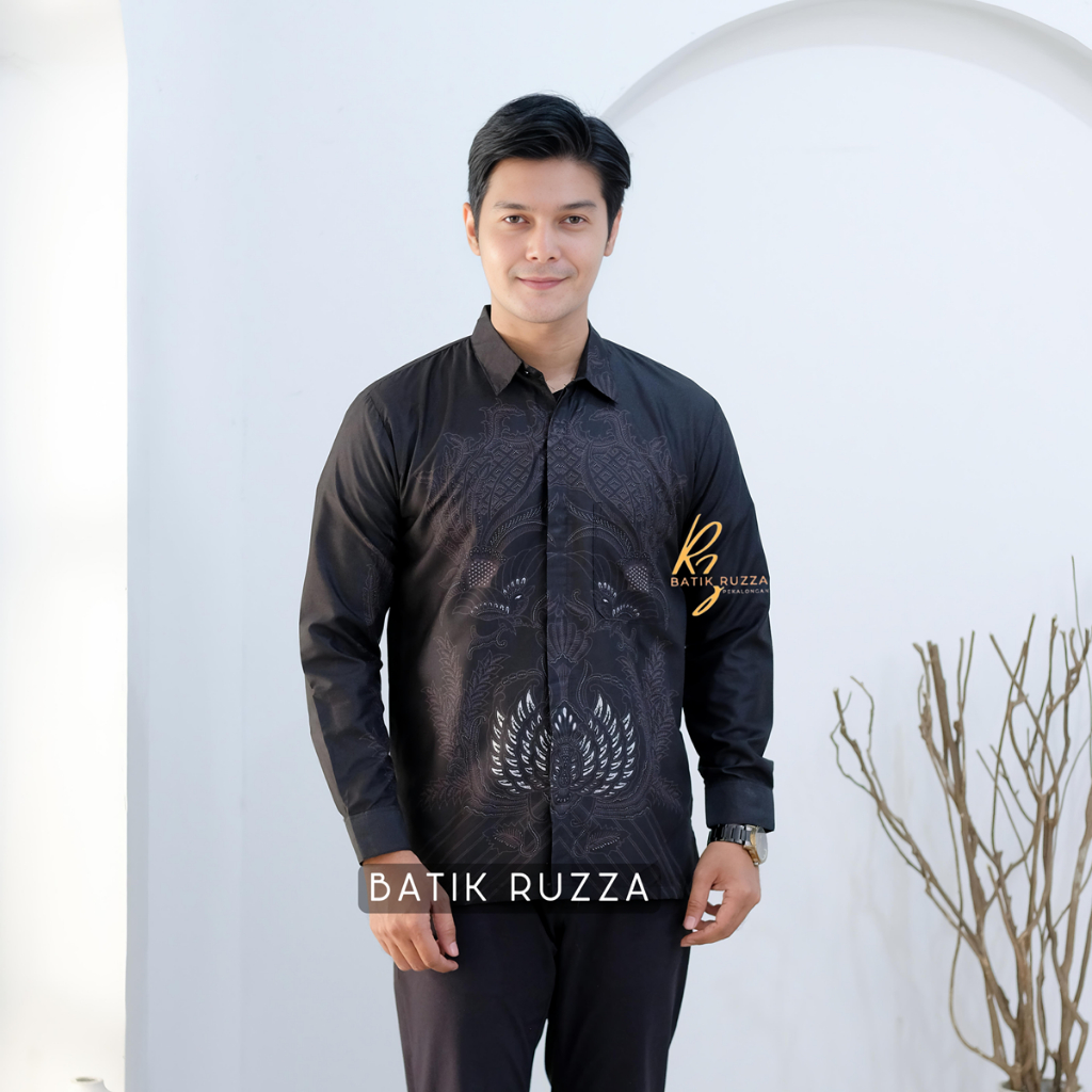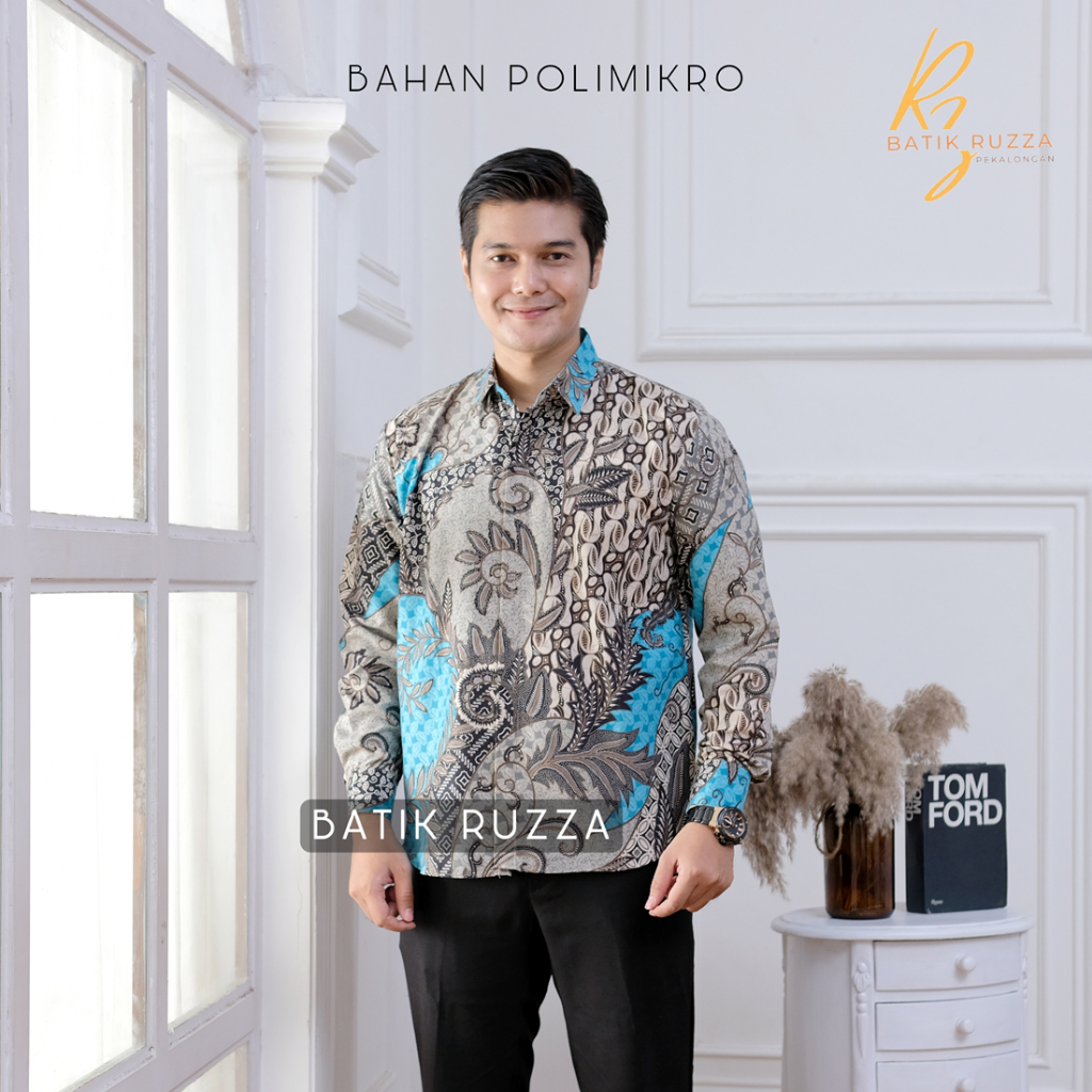 KEMEJA RUZZA Men's Long Sleeve Batik Shirt with Sogan Murai Motif Size ML XL Batik Shirt for Men