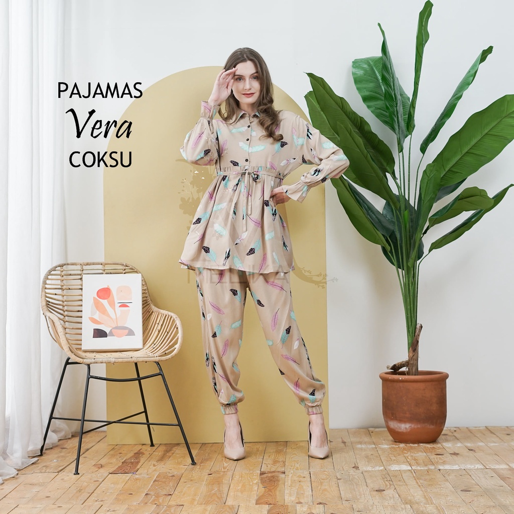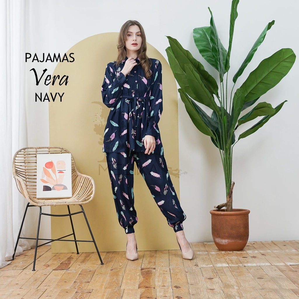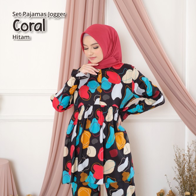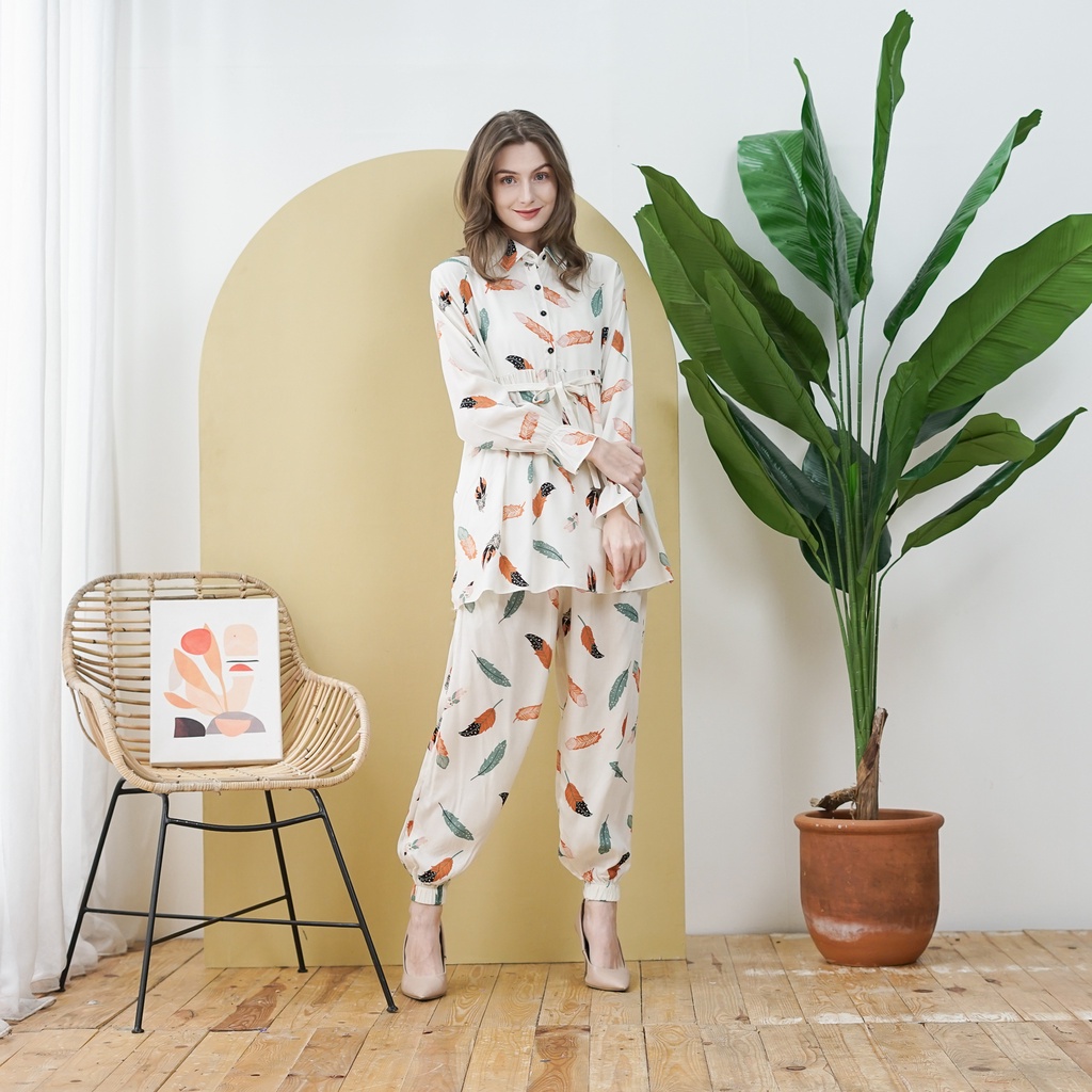 Indonesian Mukena Center - Pajamas Set Muslim Rayon Jogger Pants with Mixed Motifs