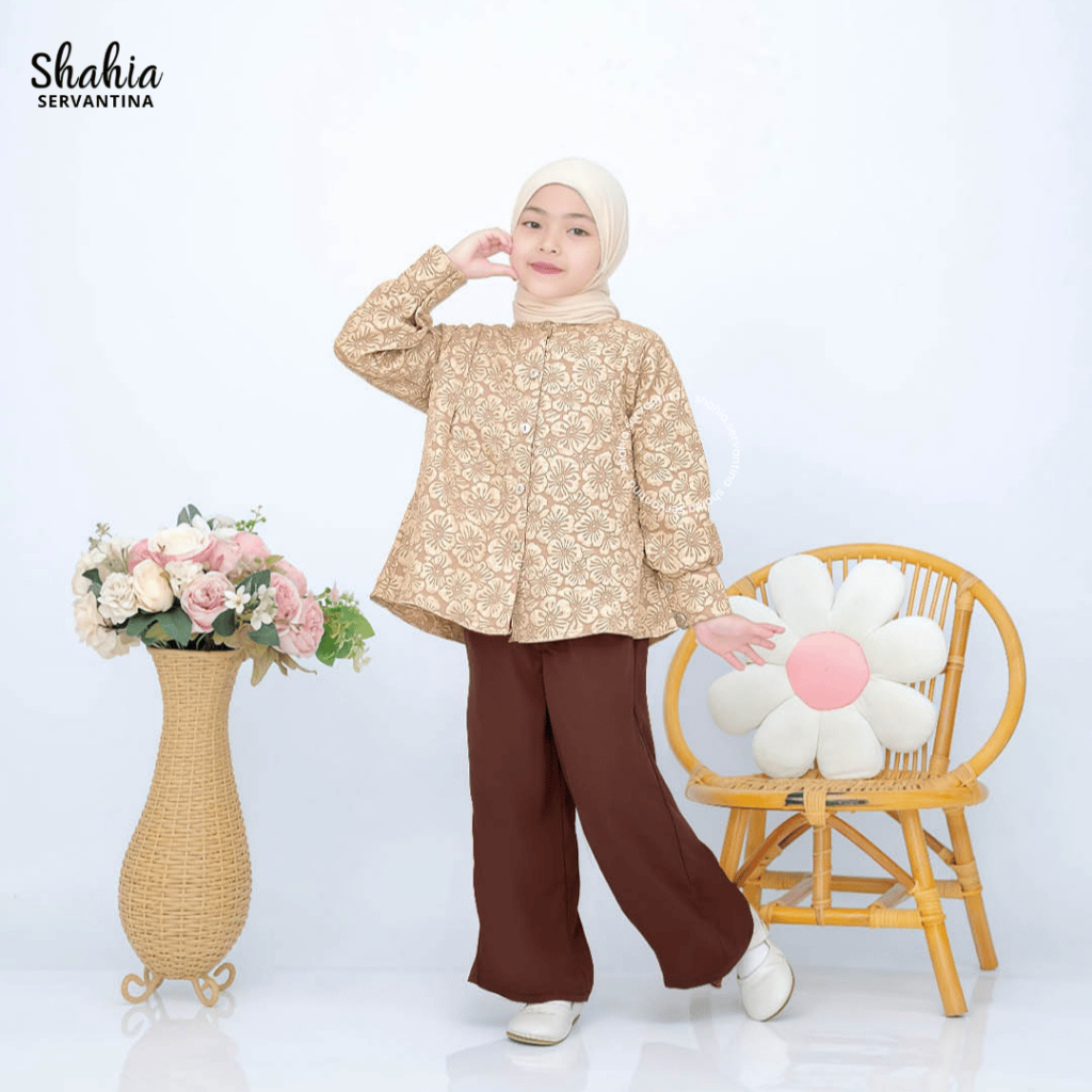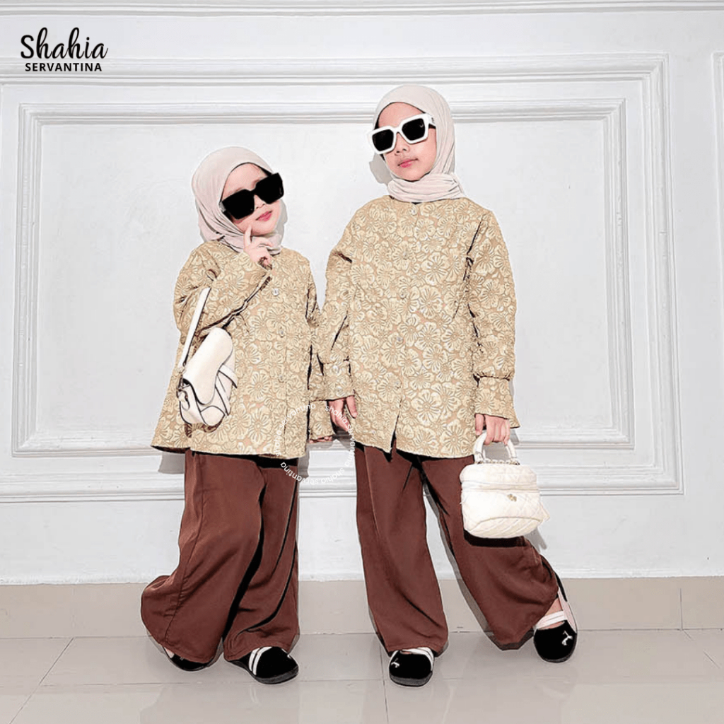 Shahia Servantina - Naira Oneset Muslim Girls' Long Pants Set Kids Muslimah Set