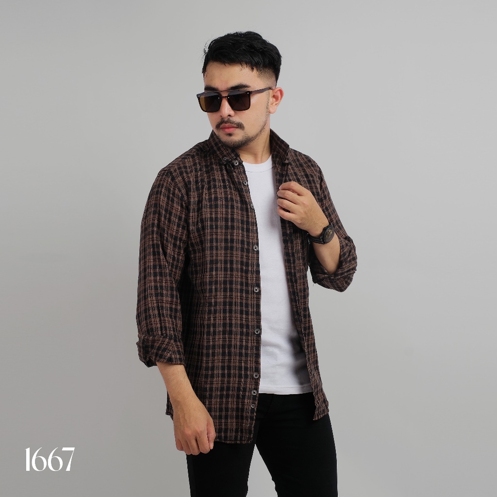 KEMEJA DGM Fashion Men's Premium Flannel Long Sleeve Shirt 1667 Flannel Shirt Checkered Shirt