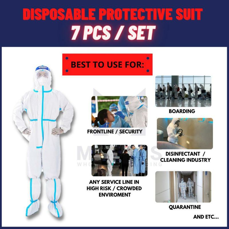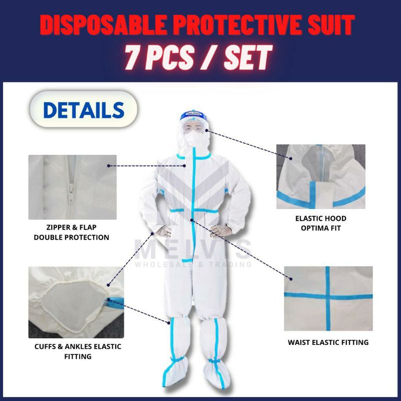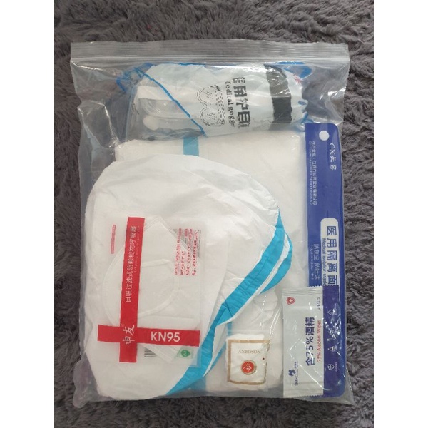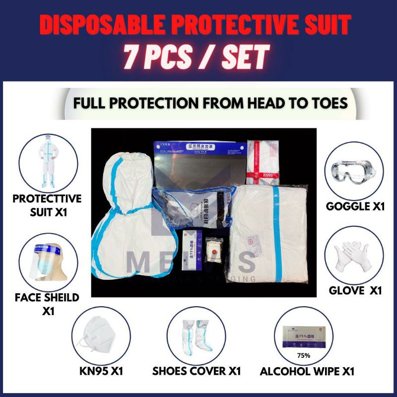 Disposable PPE Kit/ Suit/ Coverall/ Goggle/ Gloves/ Mask/ Shield/ Footwear/ Wipe, For Travel Use, 一次性防护隔离服7件套现货 7 in 1