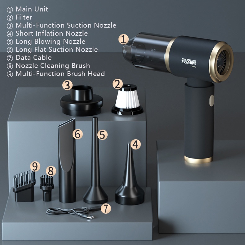 [SG stock]9 in1 Car Vacuum Cleaner Multifunctional Handheld Wireless Cleaner Powerful Suction Mini Vacuum Cleaner