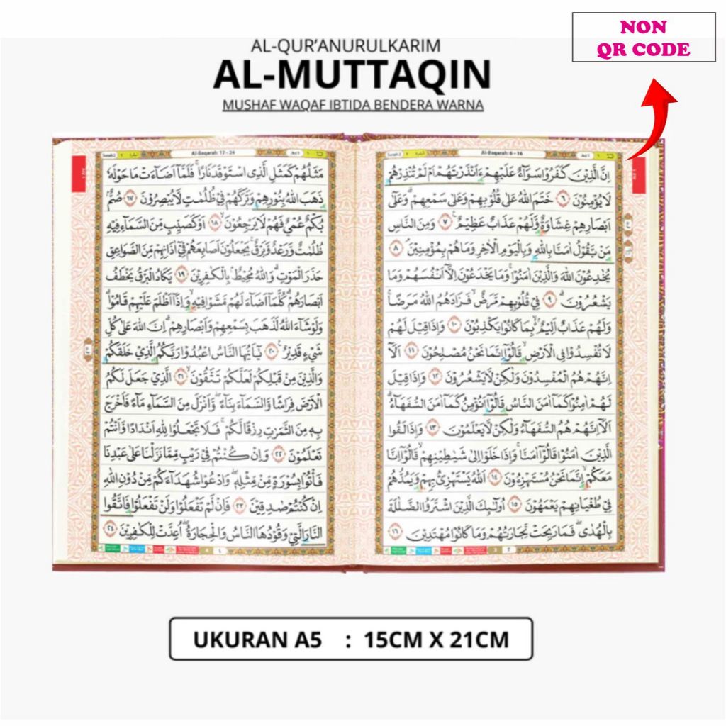 Al-Quran Al-Muttaqin A5 HC Non-translation Mushaf Waqaf Ibtida Flag Color Rasm Usmani Indonesian Standard Al Muttaqin Publisher Al-Qosbah