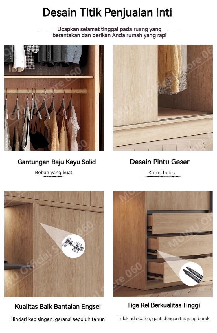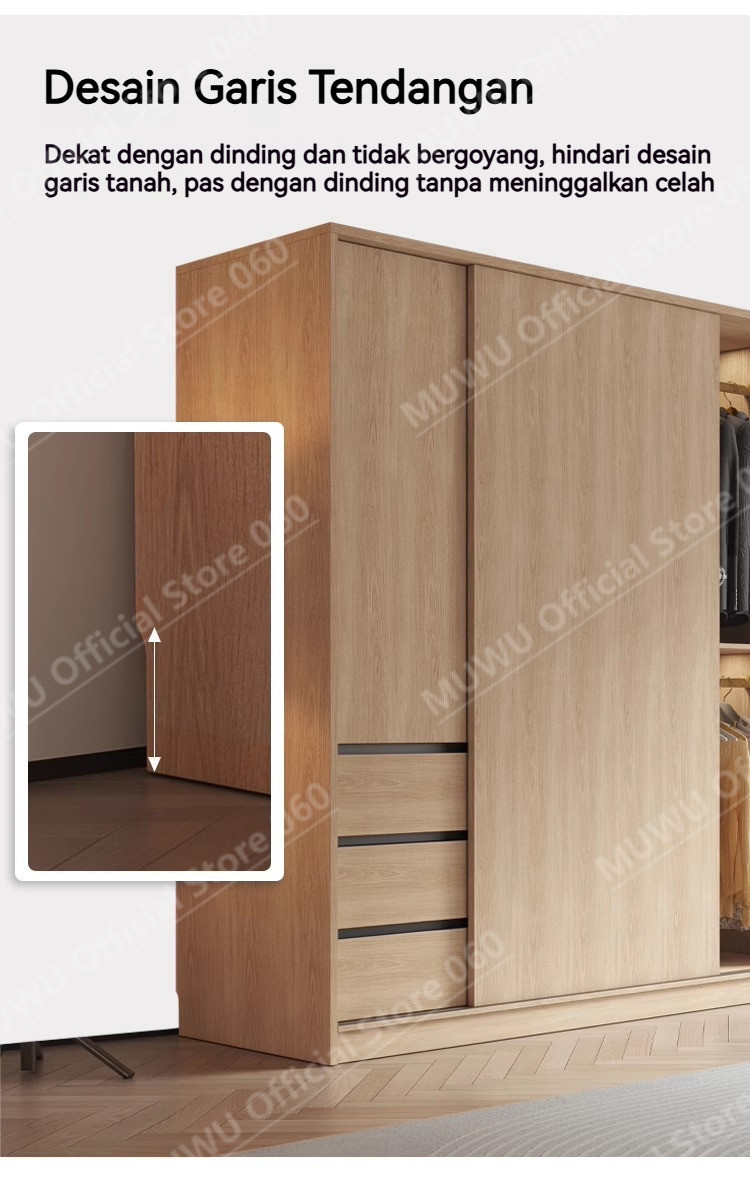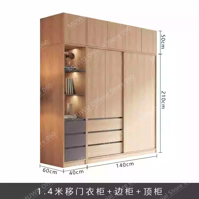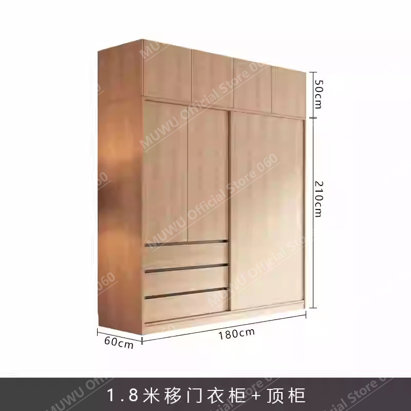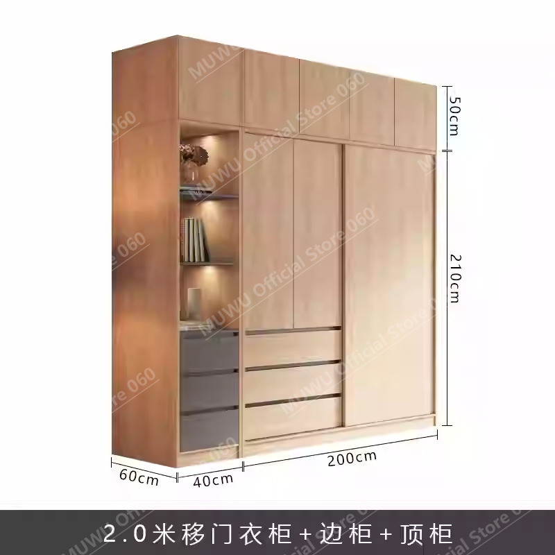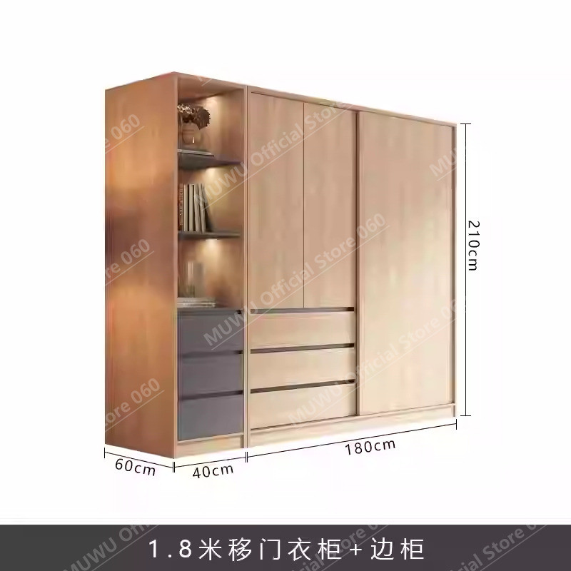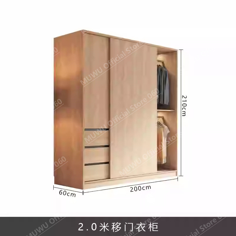 MUWU Simple Modern Log Style Sliding Door Closet For Home Bedroom Small Cabinets Sliding Door Closet