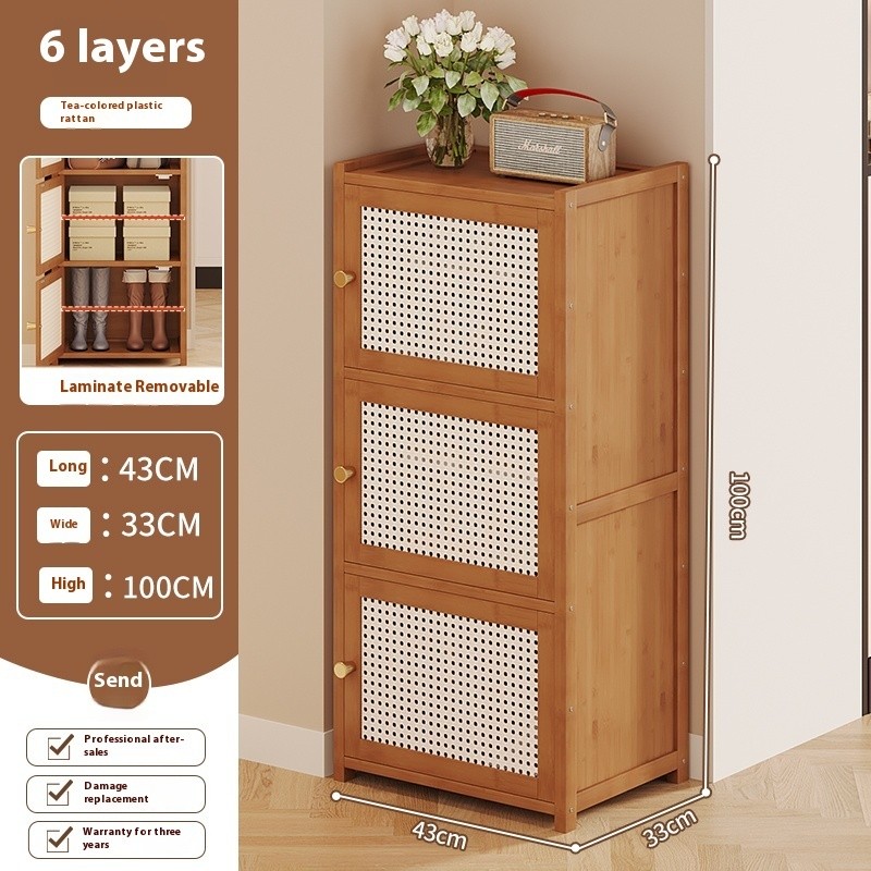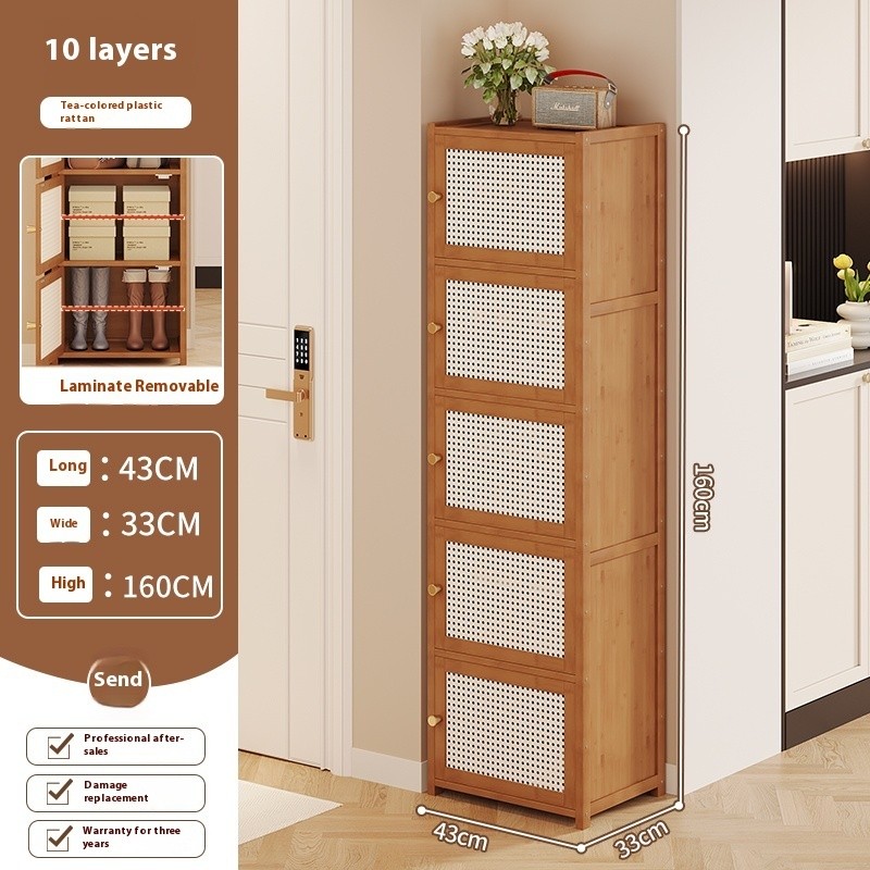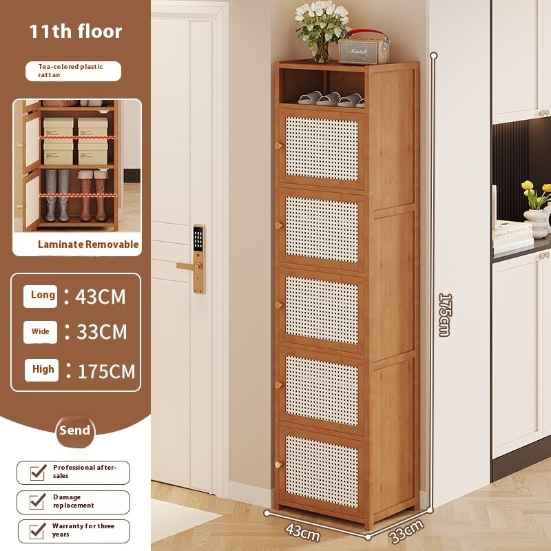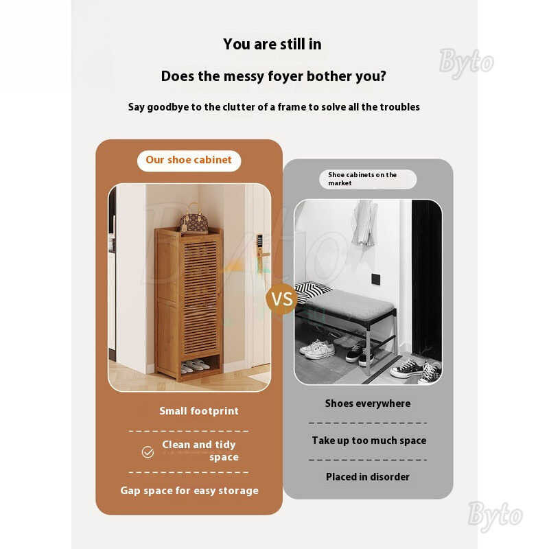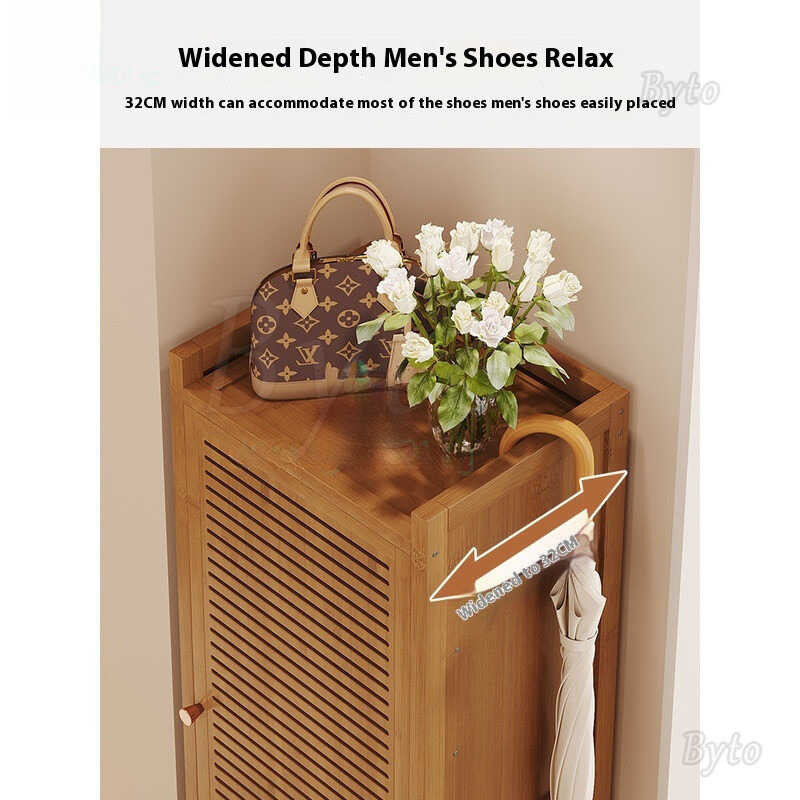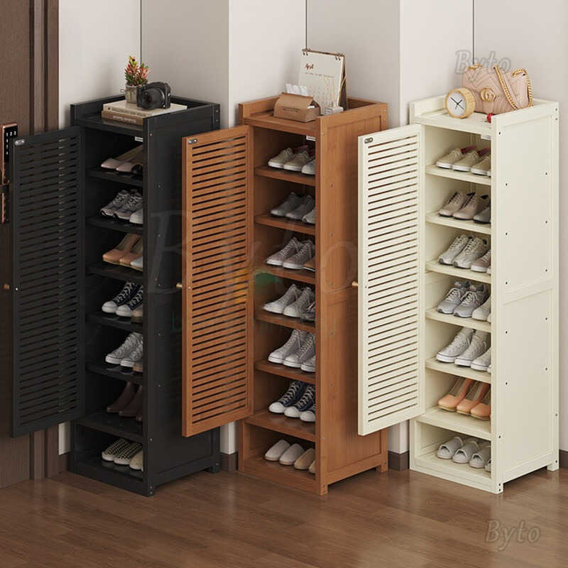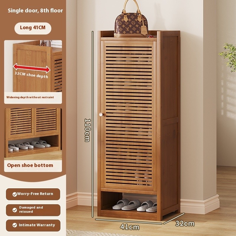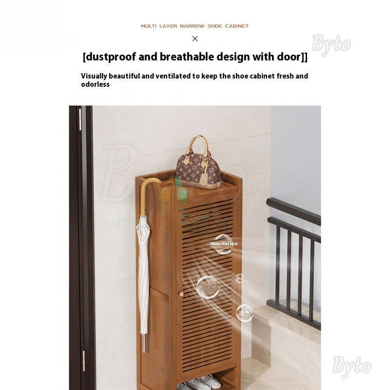 Shoe Cabinet Rack Entry Shoe Home Entrance Good Looking Single Belt Door Small Narrow Cabinet Indoor Bamboo New Style Popular Mini .Byto