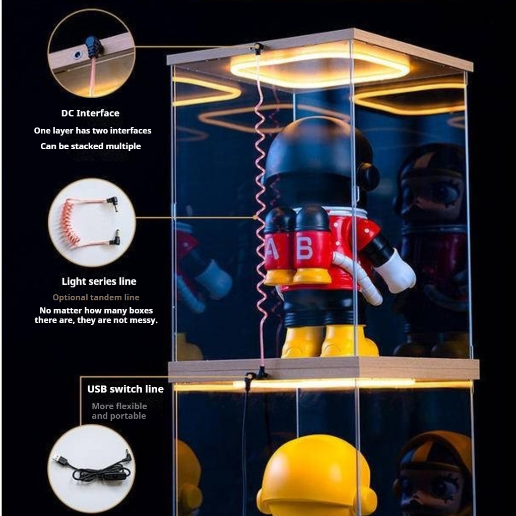 Byto Acrylic Display Box With Light Figurine Model Cover Up To Glue Free Storage Box Big Baby Dust-proof Cabinet Car Model Box Customization