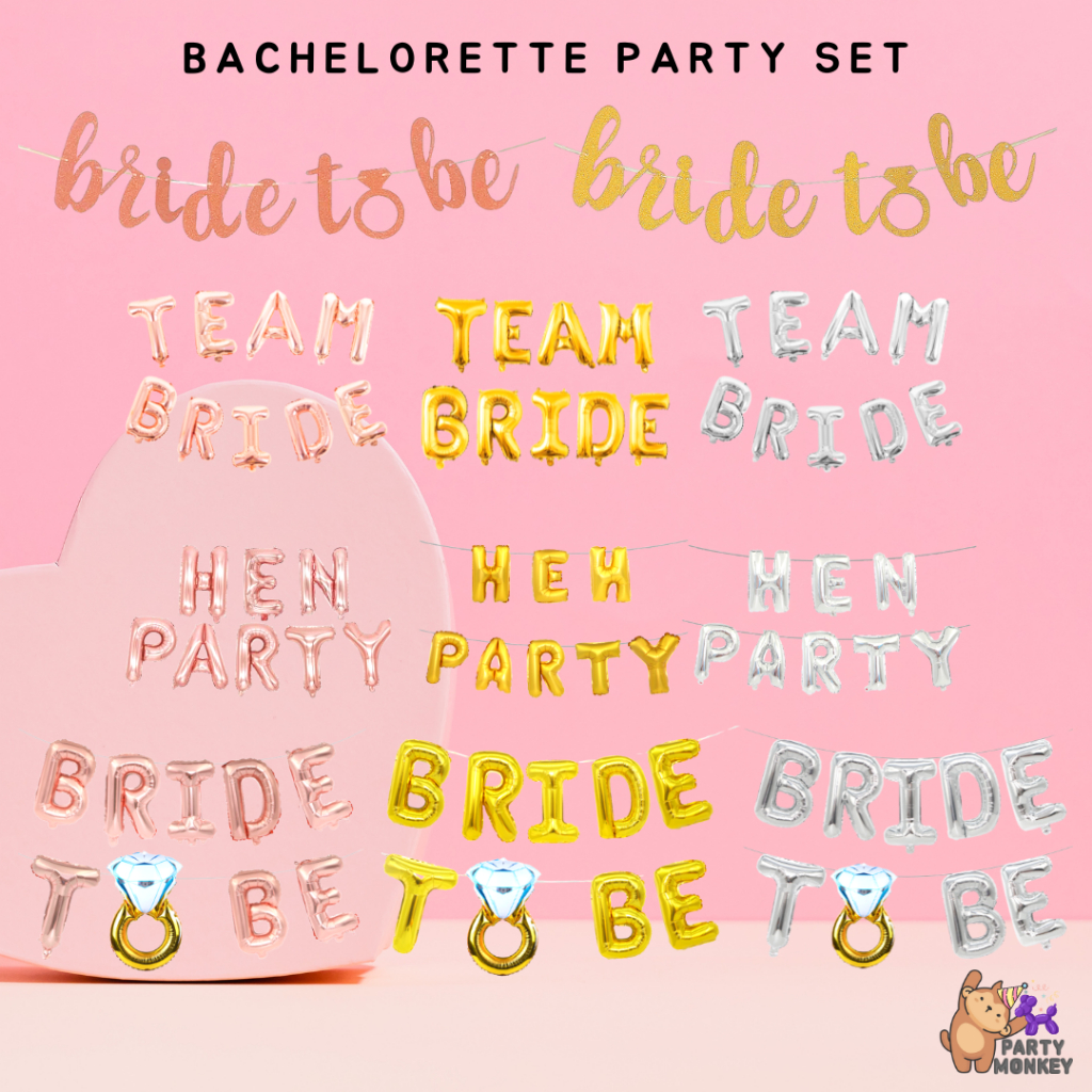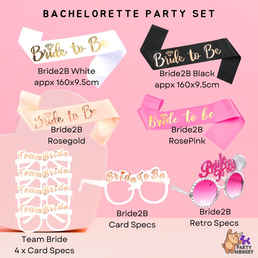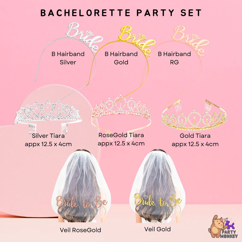 [SG Instock] Bride To Be Balloon Hen Party Bridal ShowerSash Tinsel Tassel Tiara Veil Team Bride Bachelorette Party