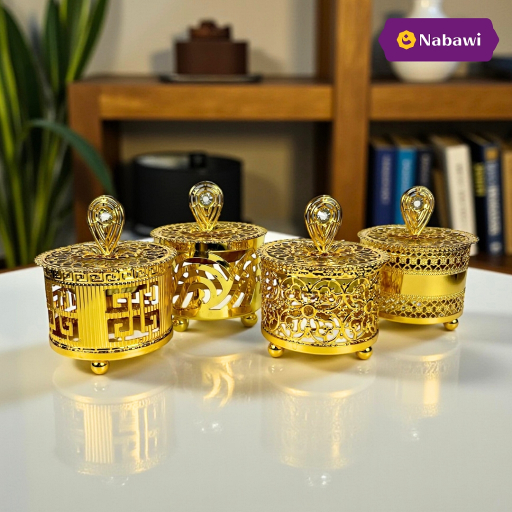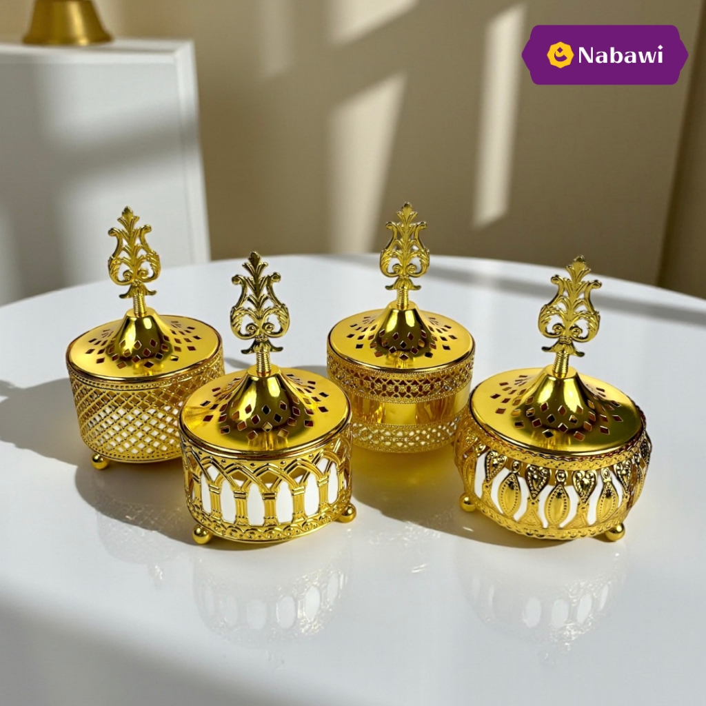 Prapen Gold Incense Burner Powder Mabkhara Bukhur Middle Eastern Arabic Design Metal Incense Furnace Incense Holder