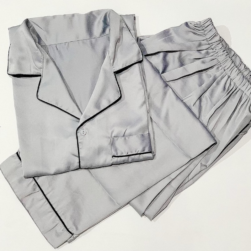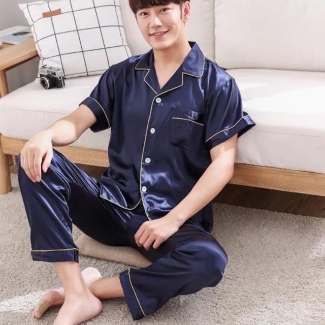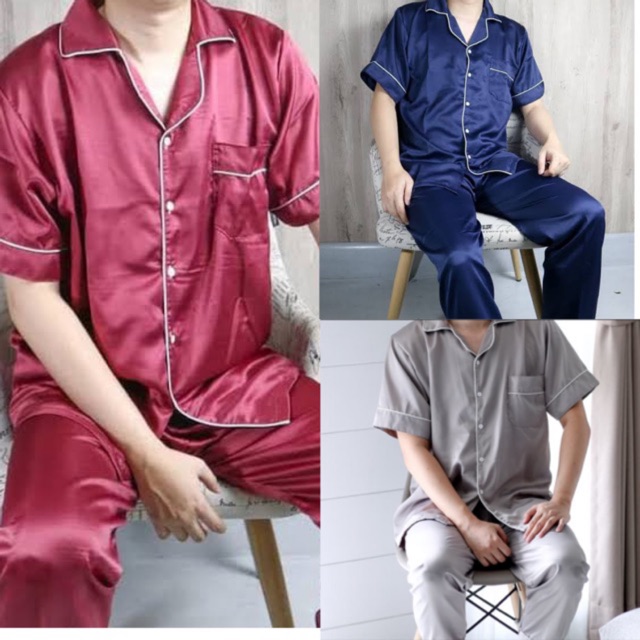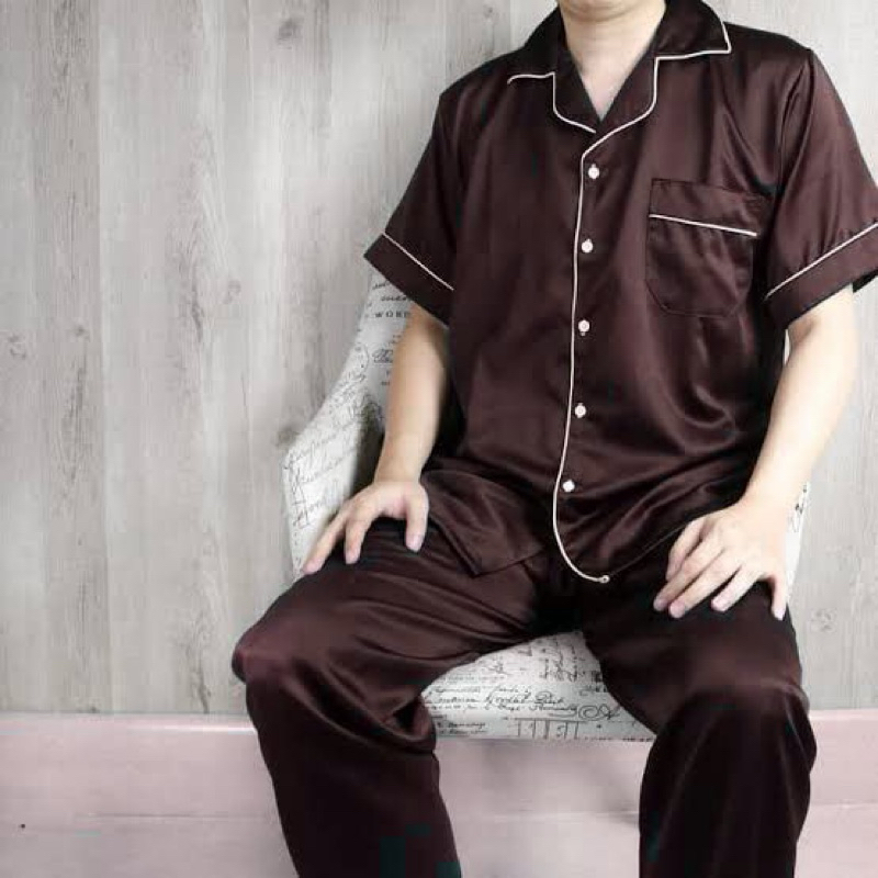 Men's jumbo pajamas, satin exclusive silk, plain, short sleeves, long pants for men, chest size 110 120 130 pajamas pants