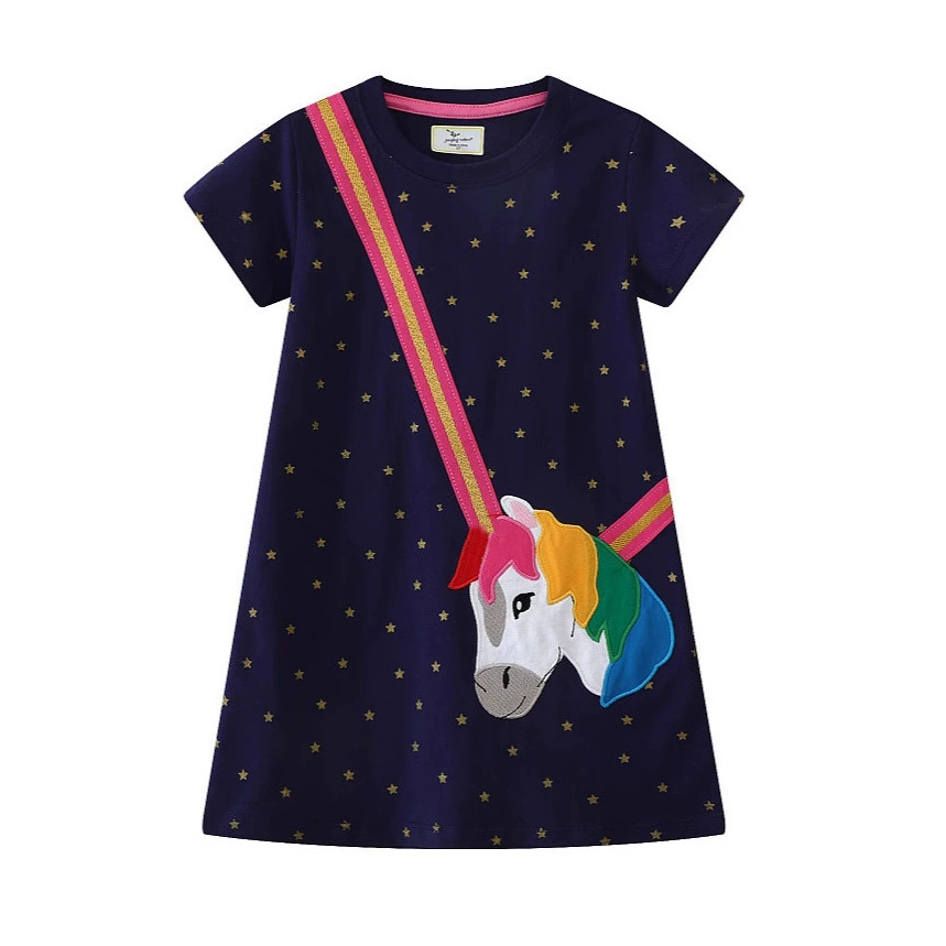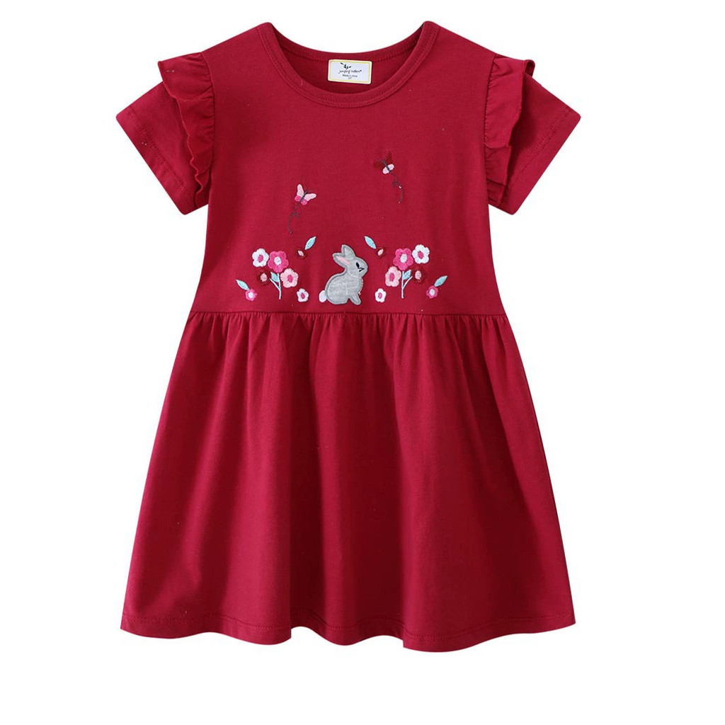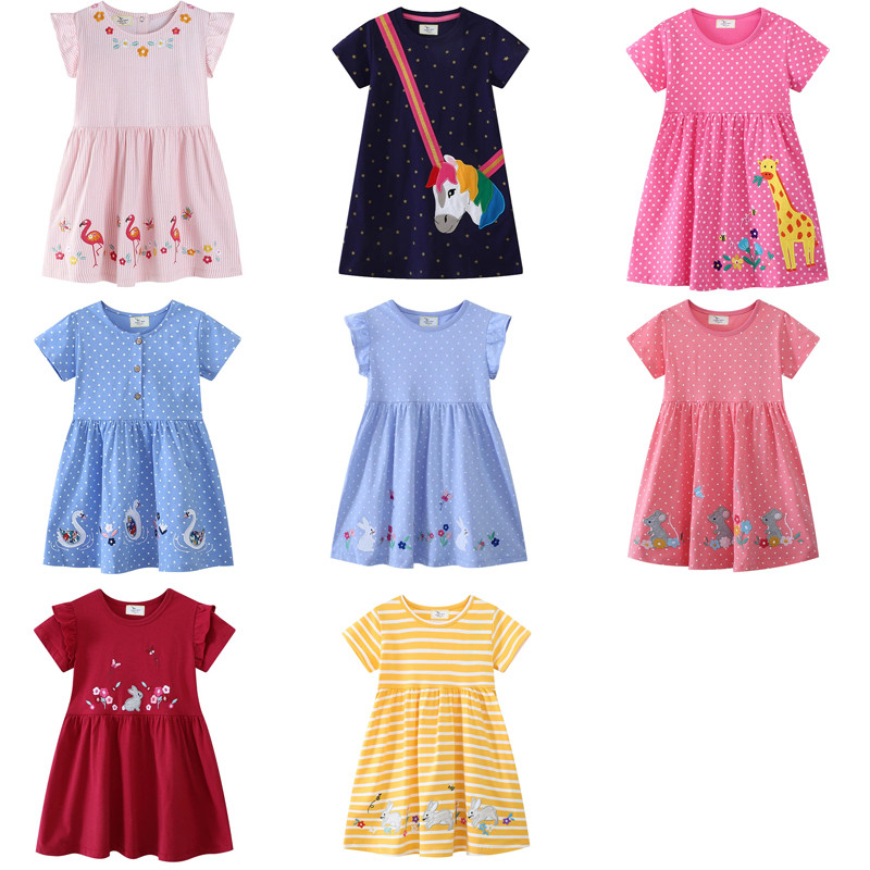 1-7 Years Old Girls Cute Cartoon Pure Cotton Fashion Short-Sleeved Dress 67327