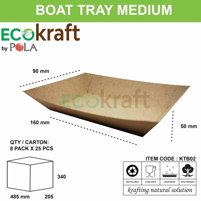 MEDIUM BOAT TRAY - BROWN PAPER BOAT - 50 PCS