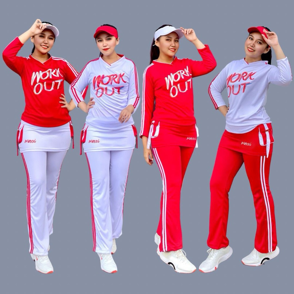 MERAH Red and White Gymnastics Suit Long Workout Skirt Sportswear Set Gym Fitness Running Jogging Cycling Cycling Cycling Long Training Uniform Indoor Outdoor Women Hijab Muslim