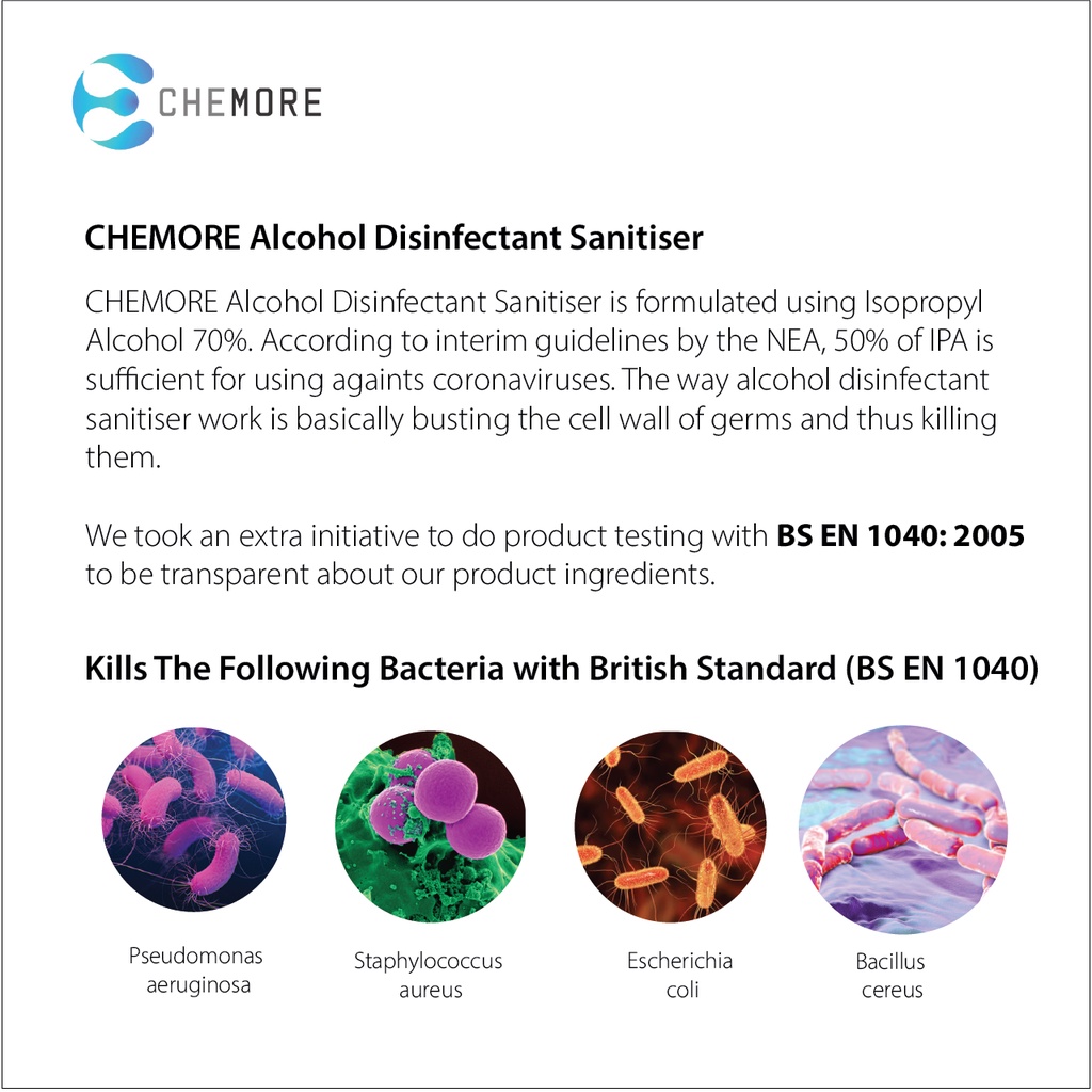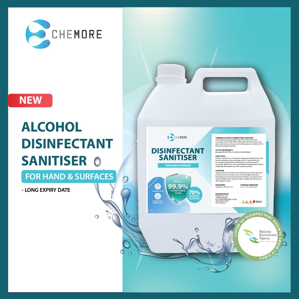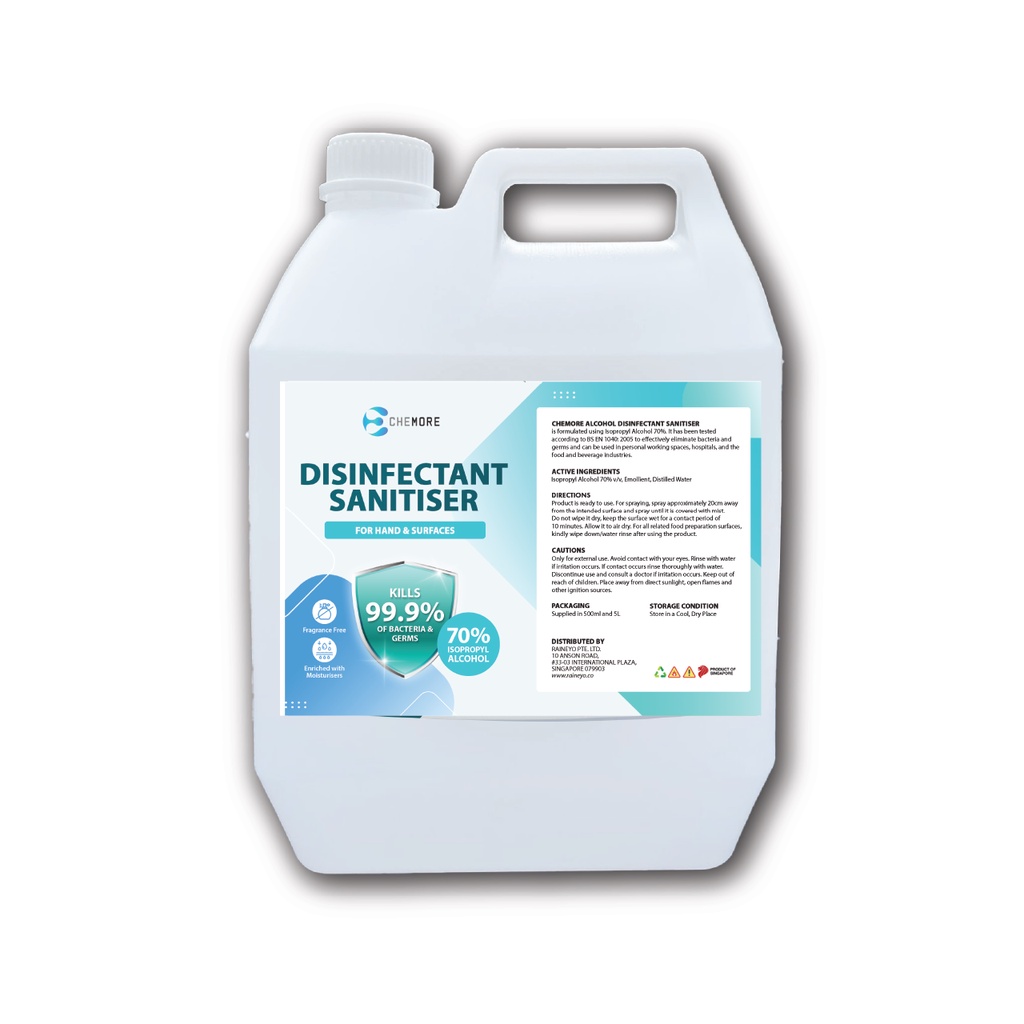 CHEMORE Sanitiser/Surface Disinfectant 70% Isopropyl Alcohol Based - 5L