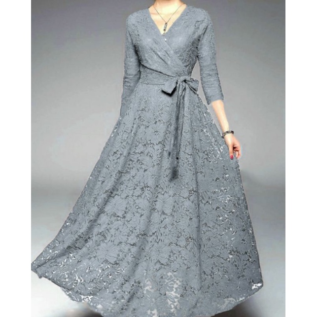 LONGDRESS BRUKAT CANTIK / DRESS PESTA PANJANG WANITA / MX ICHA - dr/lily - 17/ dres vneck / gamis vneck maxi dress long dress