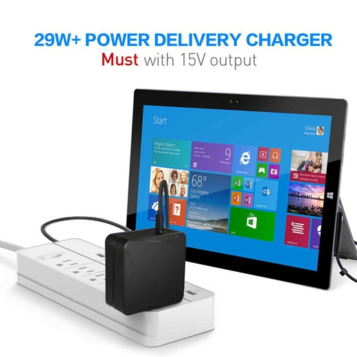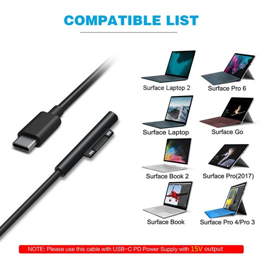 USB Type C to Surface Charging Cable 65 Walt for Surface Pro 3 4 5 6 Go Book 15V PD