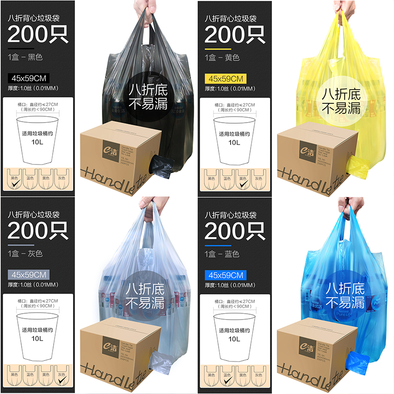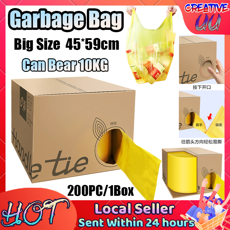 🔥【SG READY STOCK】🔥200pcs 45*59cm Rubbish Bag Handle Breakpoint Thickened Disposable Garbage Bag Plastic Trash Bags 垃圾袋