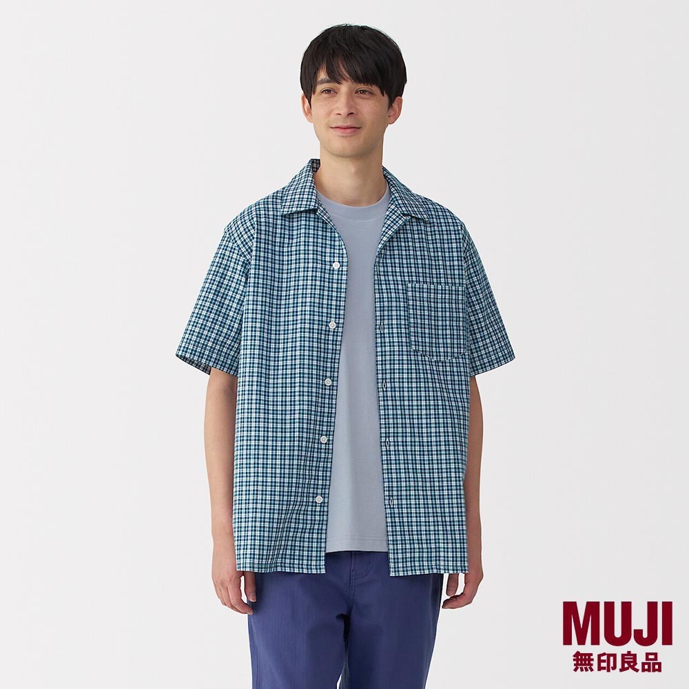 MUJI Men Madras Checked Open Collar S/Slv Shirt