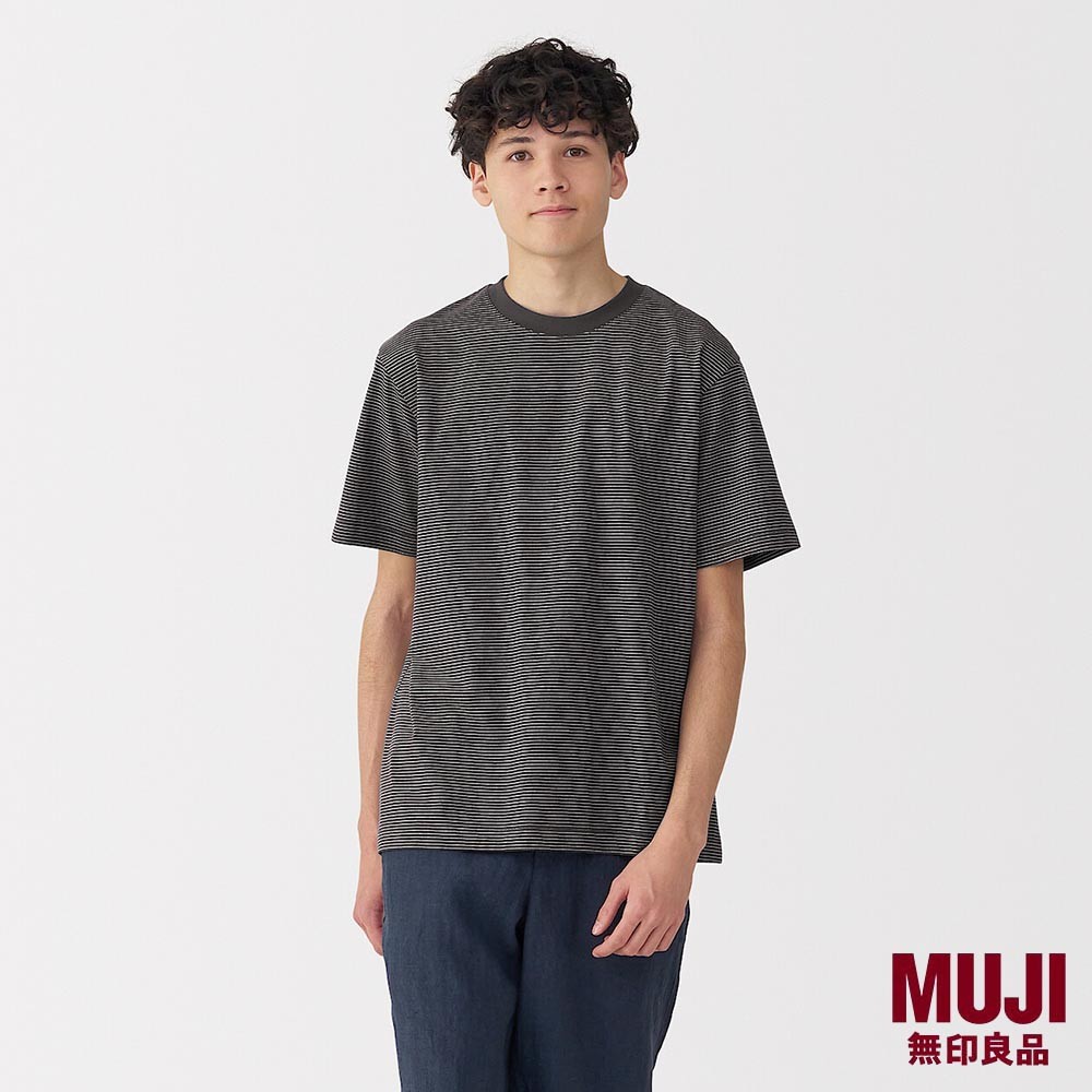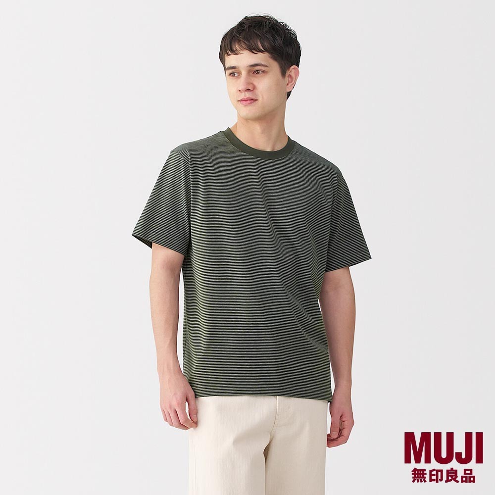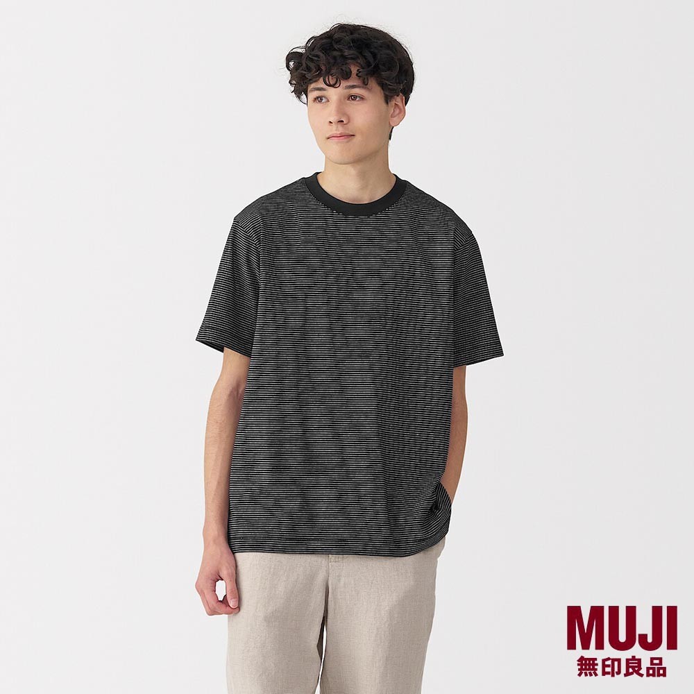 MUJI Men Jersey Striped Crew Neck S/SLV T-Shirt