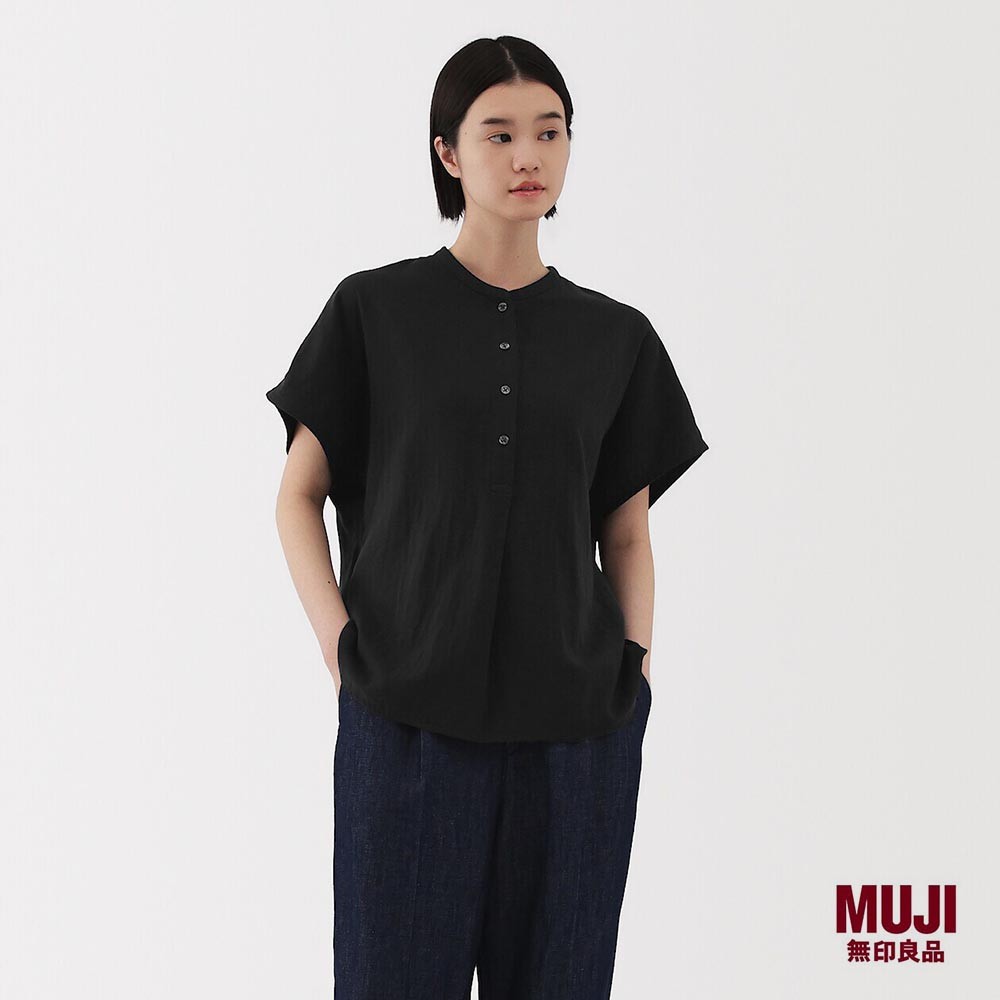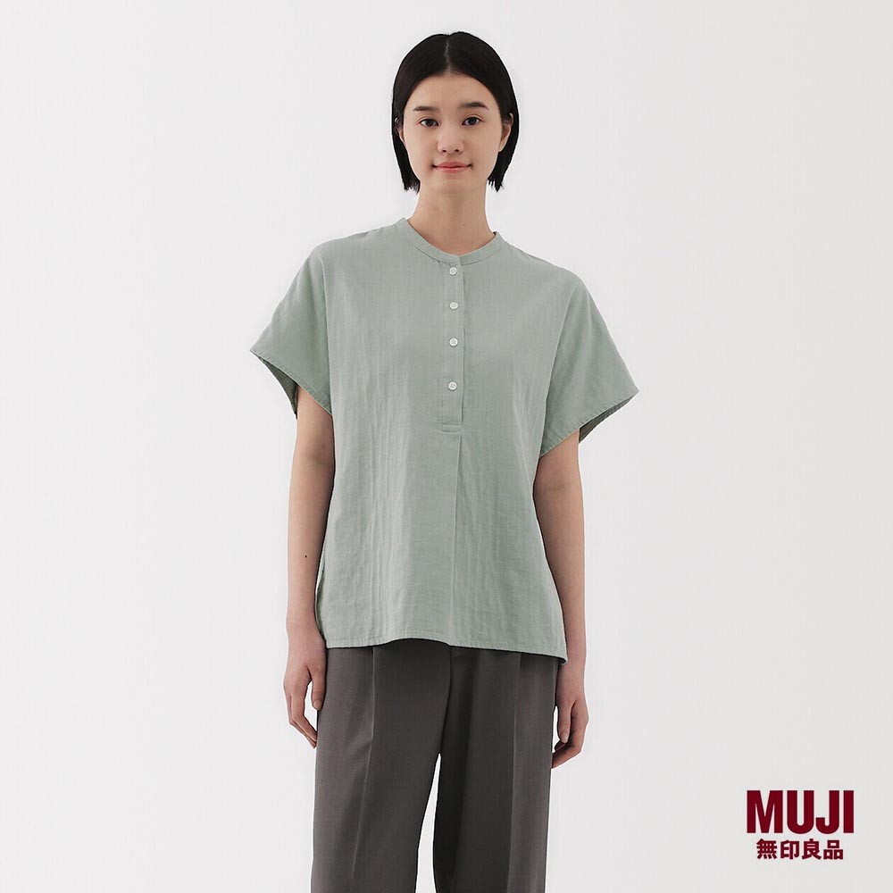 MUJI Ladies Kapok Blend Double Gauze Short Sleeve Blouse