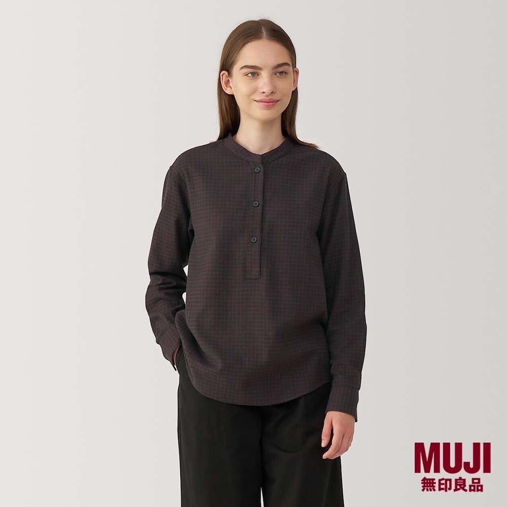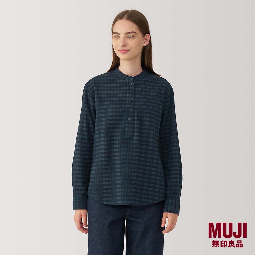 MUJI Ladies Double-Brushed Flannel Stand Collar L/S Blouse
