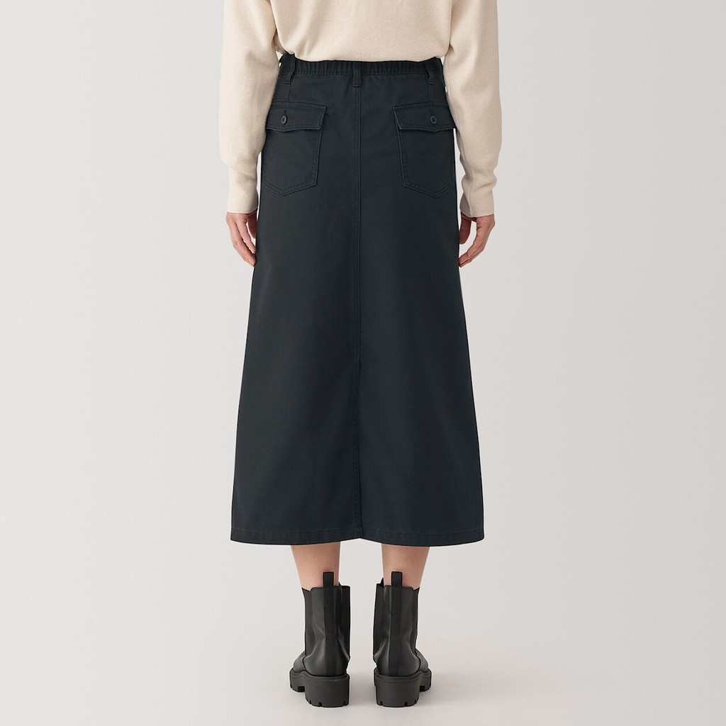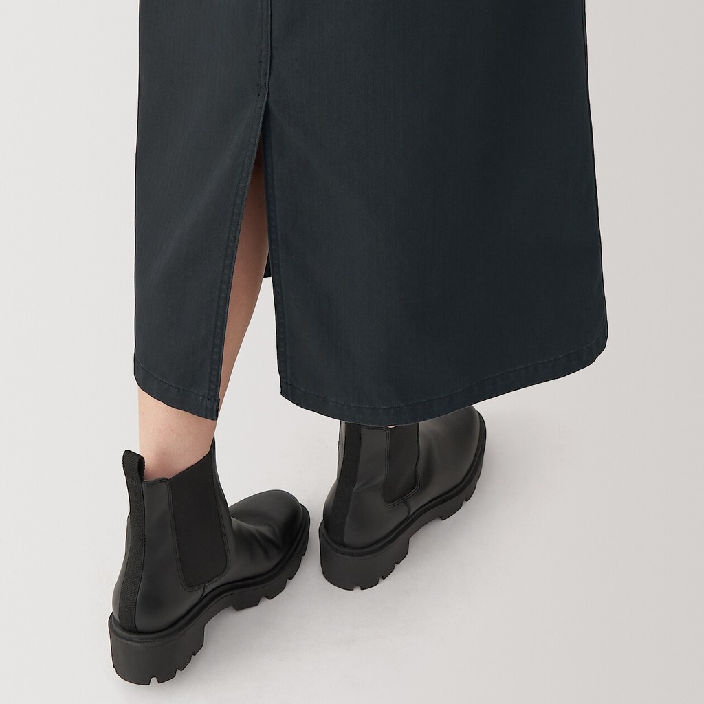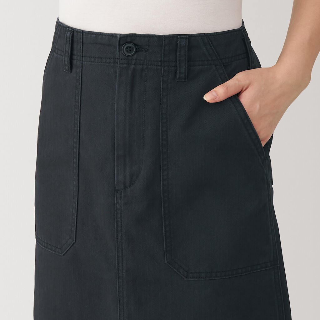 MUJI Ladies Washed Herringbone Baker Straight Skirt