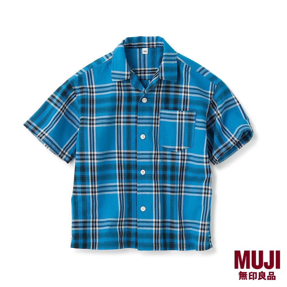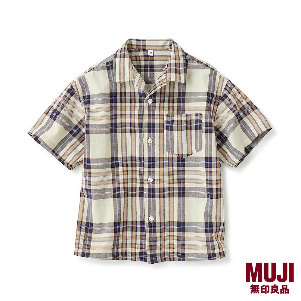 MUJI Kids Madras Checked Open Collar S/SLV Shirt