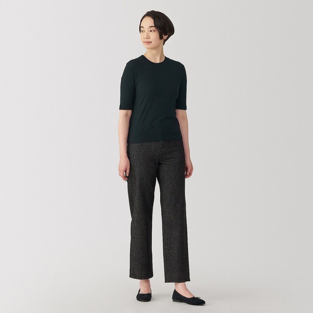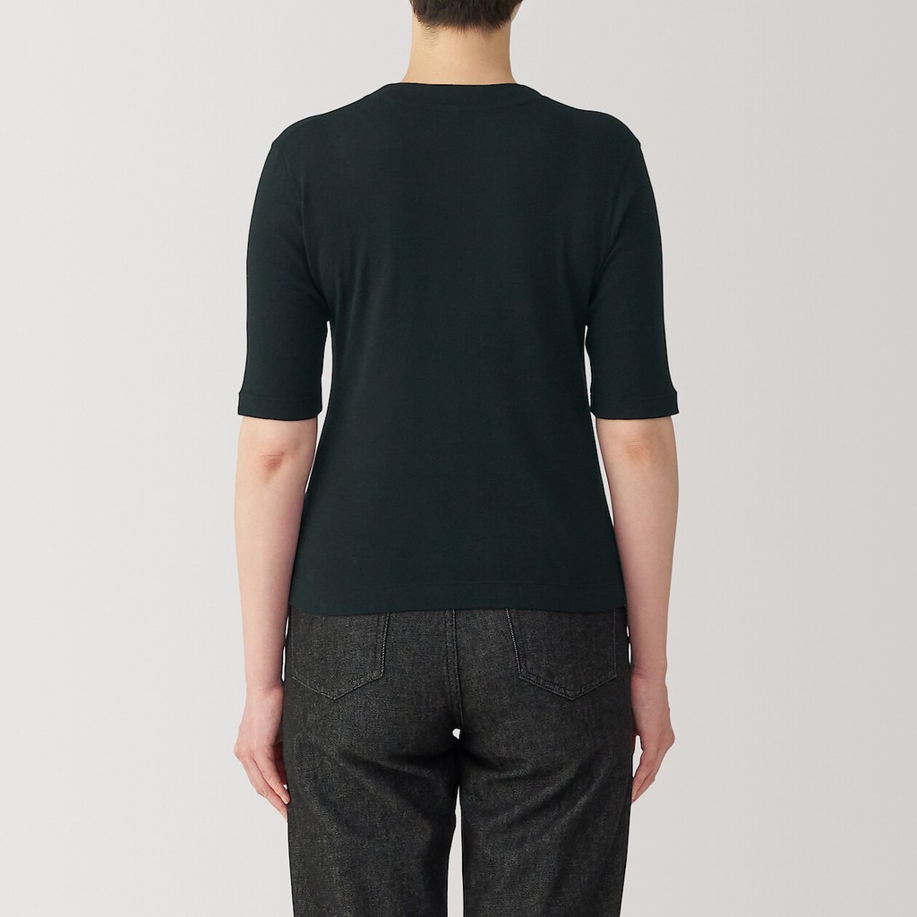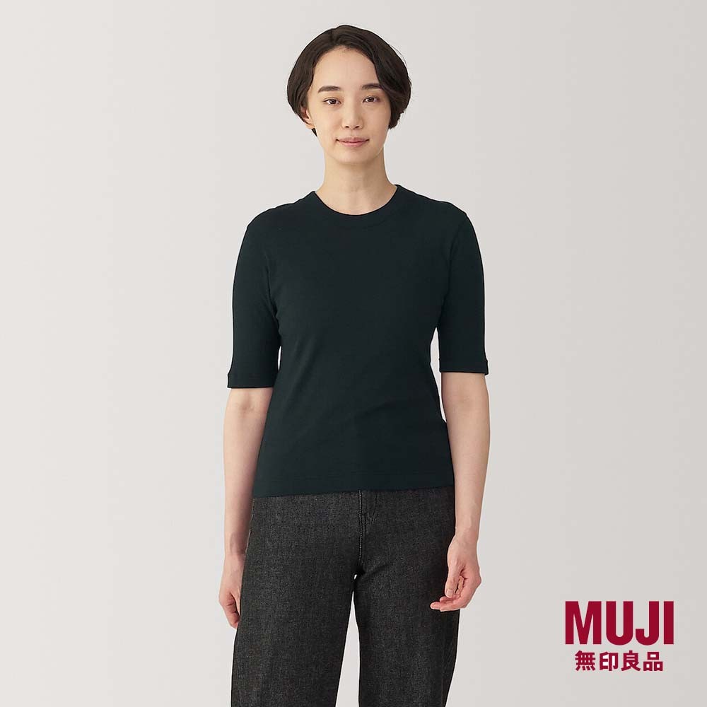 MUJI Ladies Soy Fiber Blend Ribbed Crew Neck 1/2 Sleeve T-Shirt
