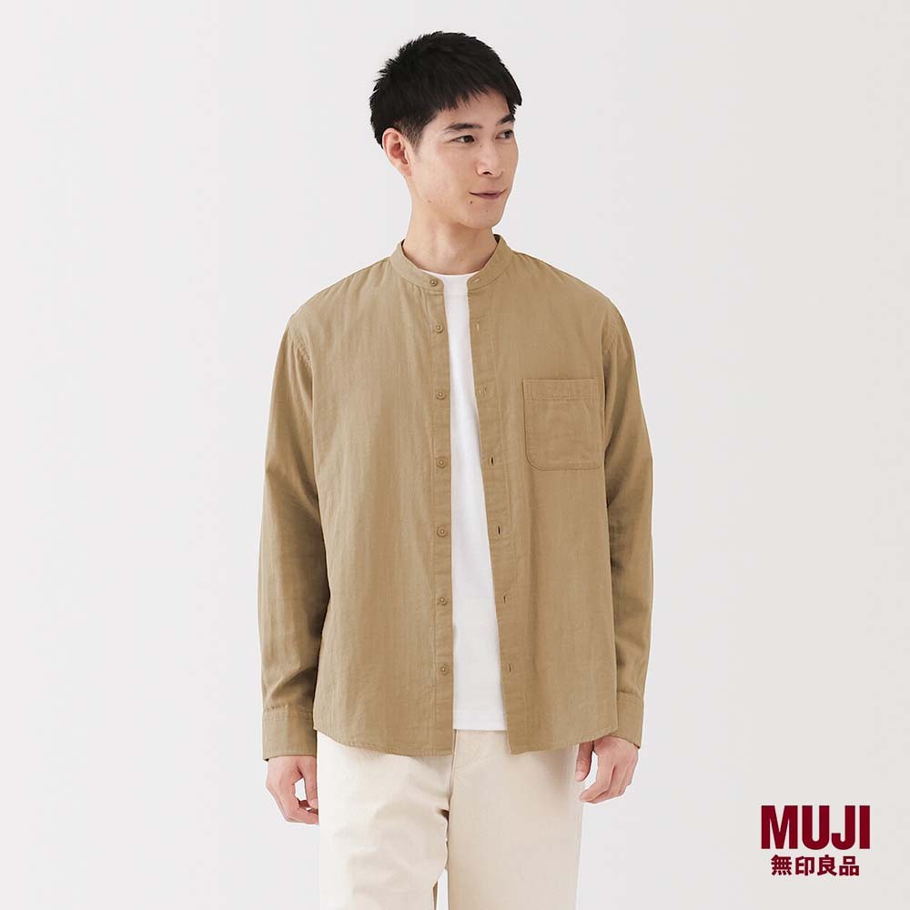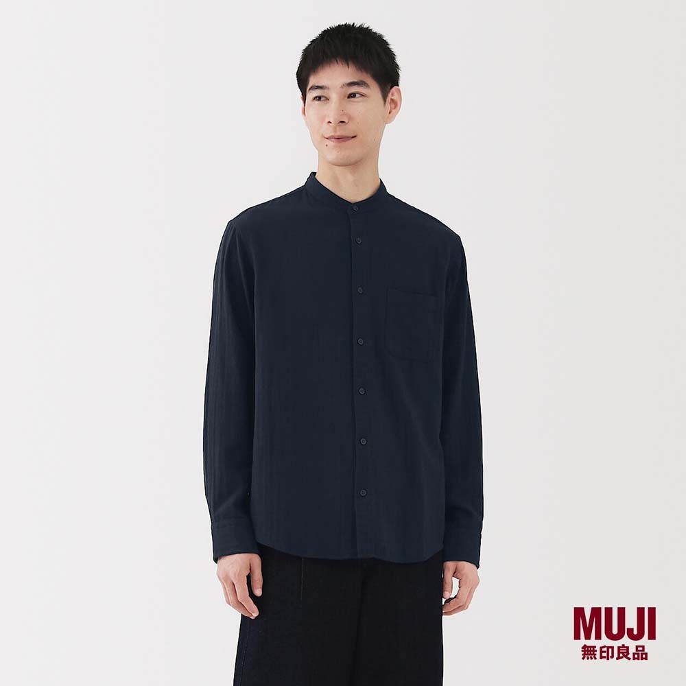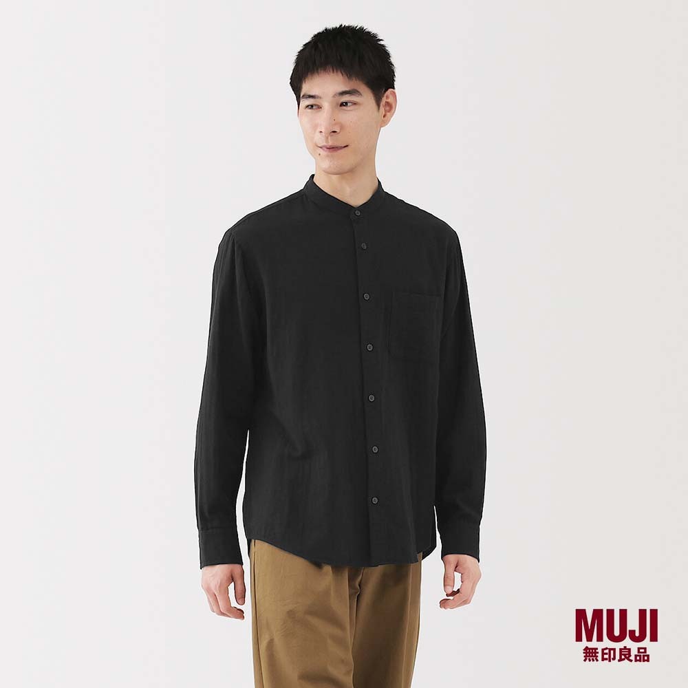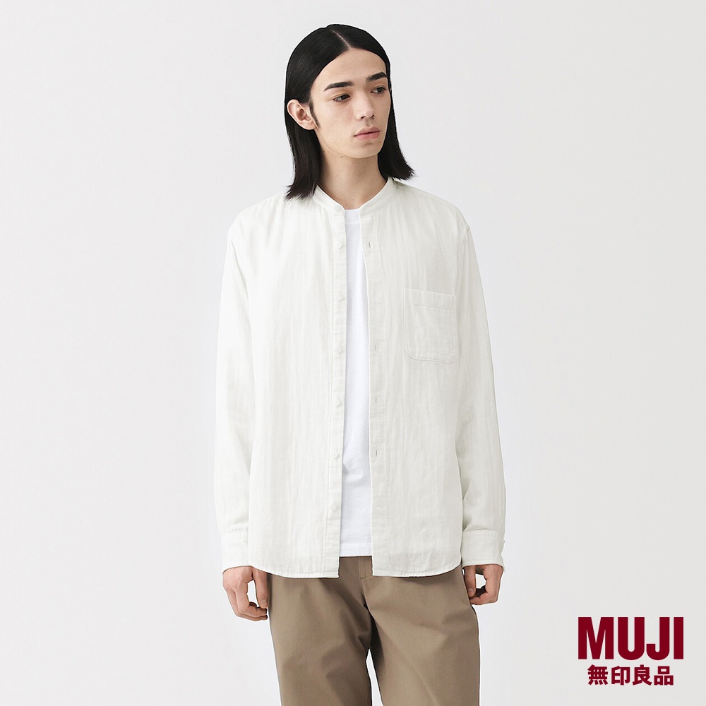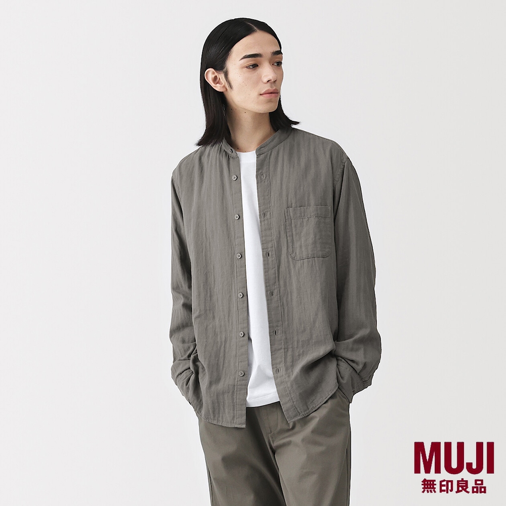 MUJI Men Kapok Blended Double Gauze Stand Collar L/Slv Shirt (OS)