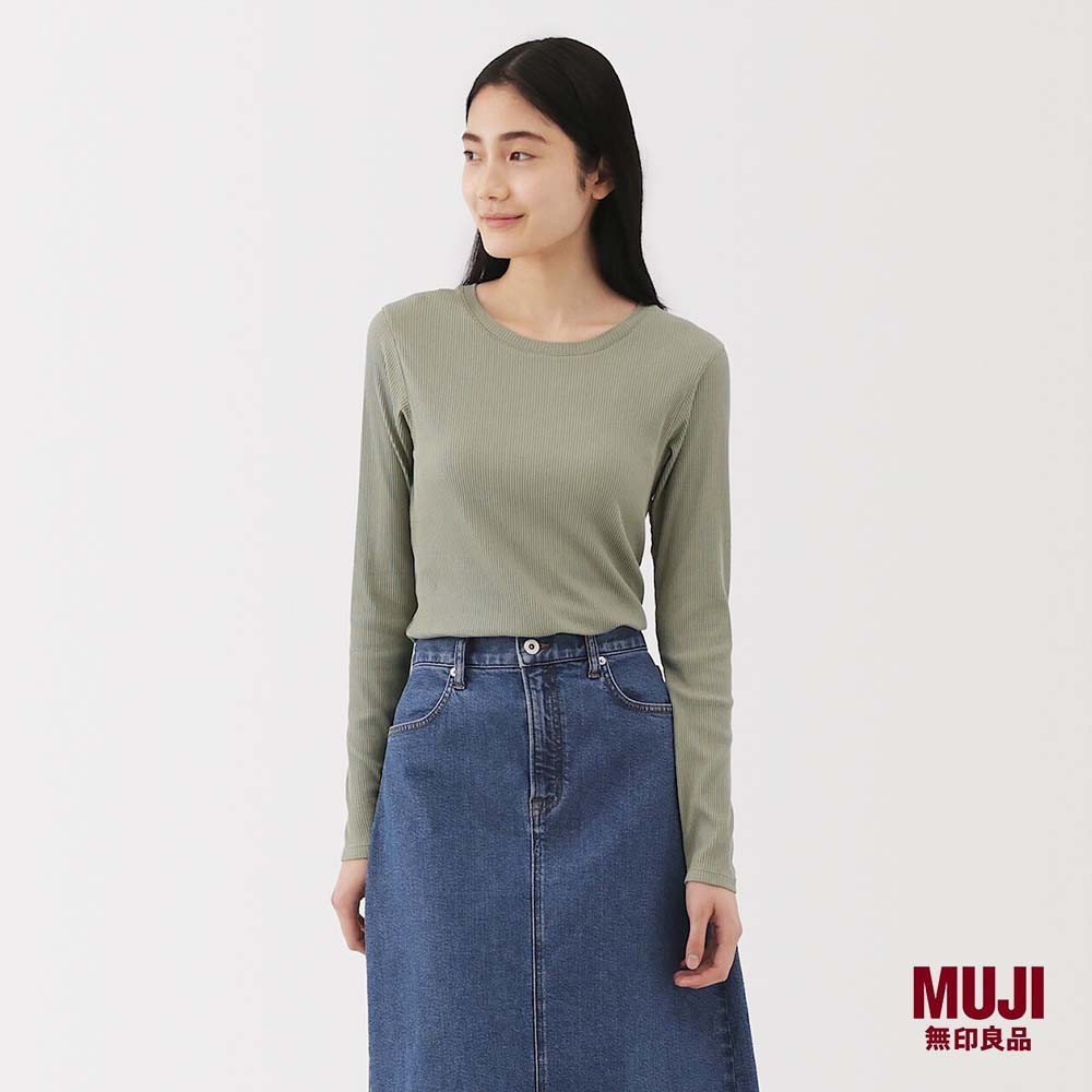 MUJI Ladies Lyocell Blend Ribbed Crew Neck L/S T-Shirt