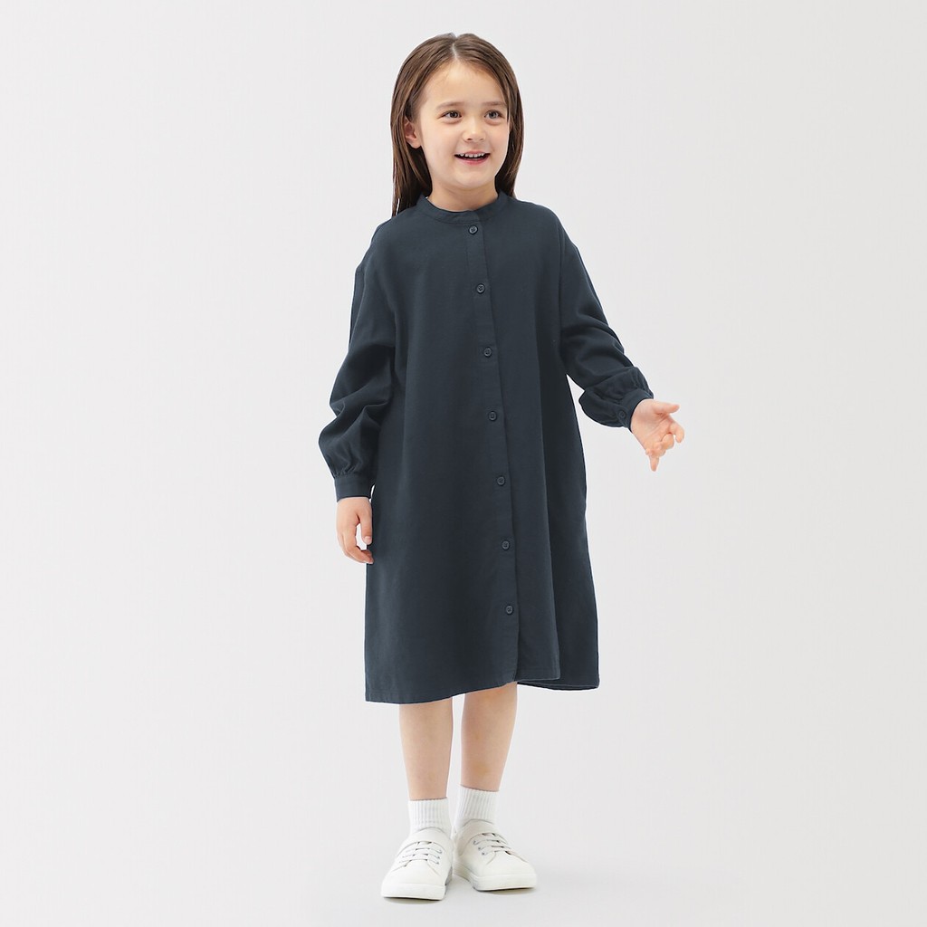 MUJI Kid Double-Brushed Flannel Stand Collar L/Slv Dress