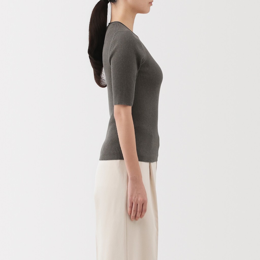 MUJI Ladies Lyocell Blended Half Sleeve Sweater