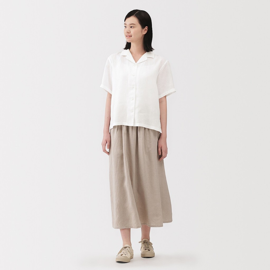 MUJI Ladies Washed Linen 1/2 Sleeve Shirt (ASEAN)