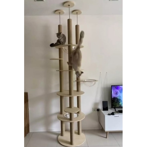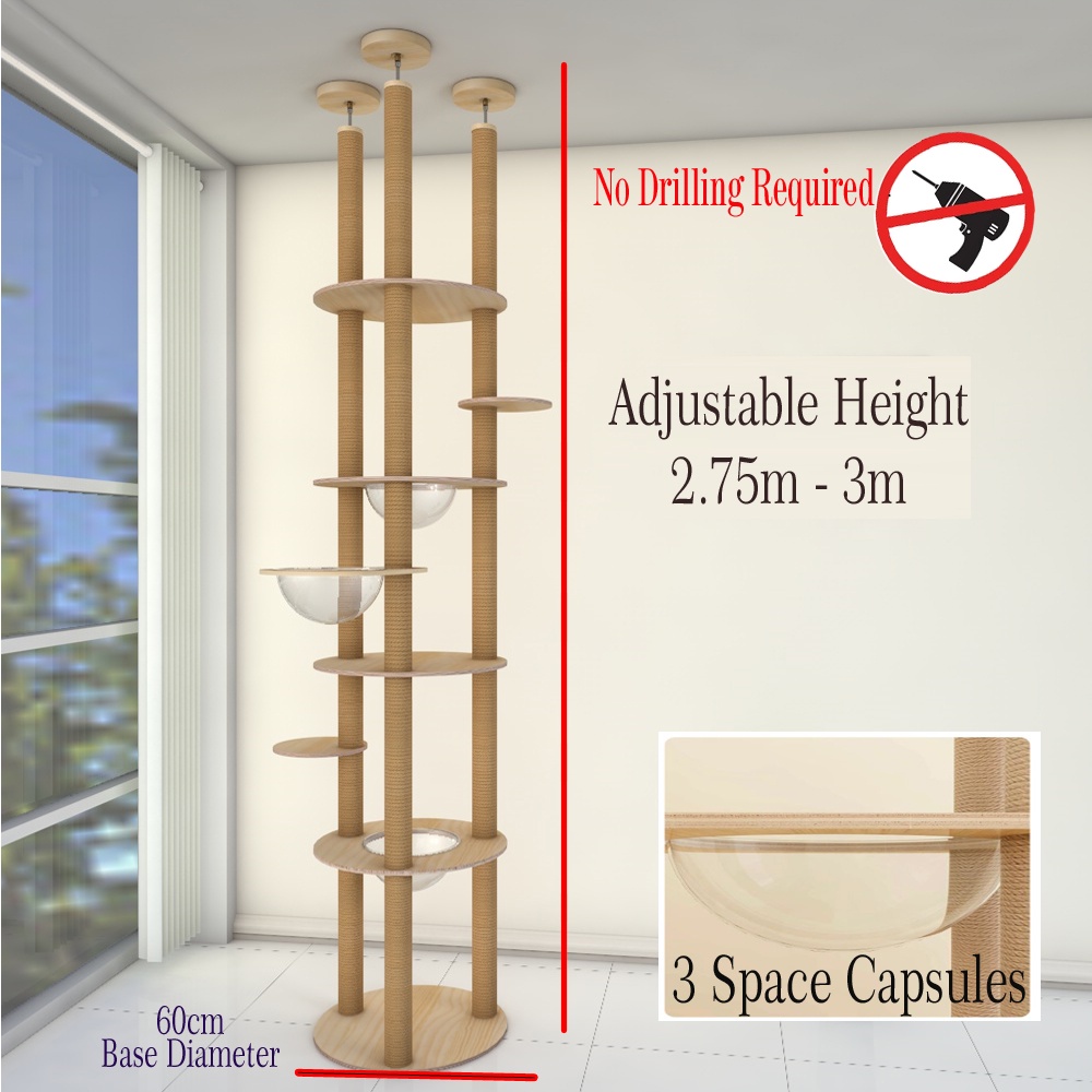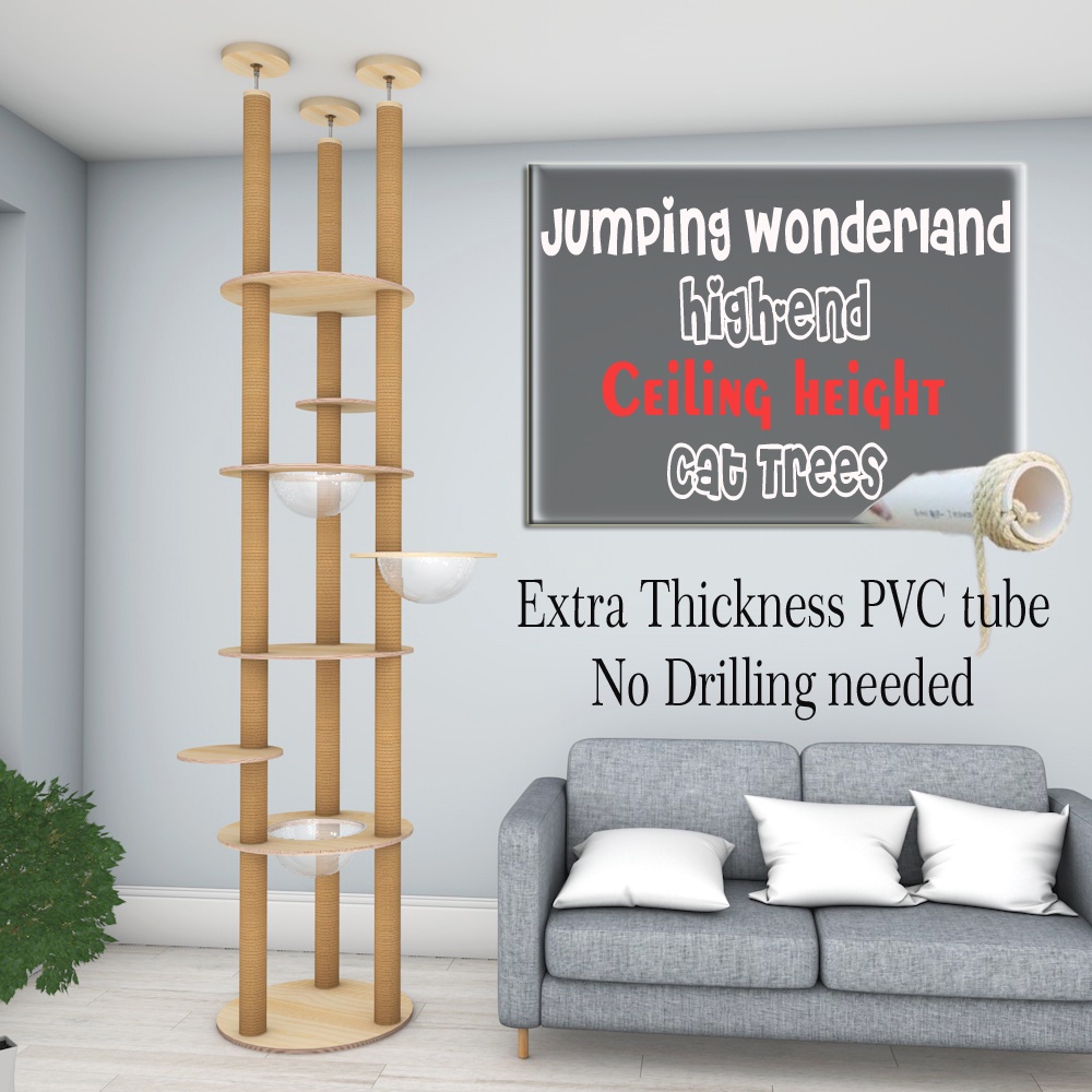 Jumping Wonderland Cat Condo High-end Ceiling height Cat Trees PVC pole /Floor to ceiling cat condo with capsule