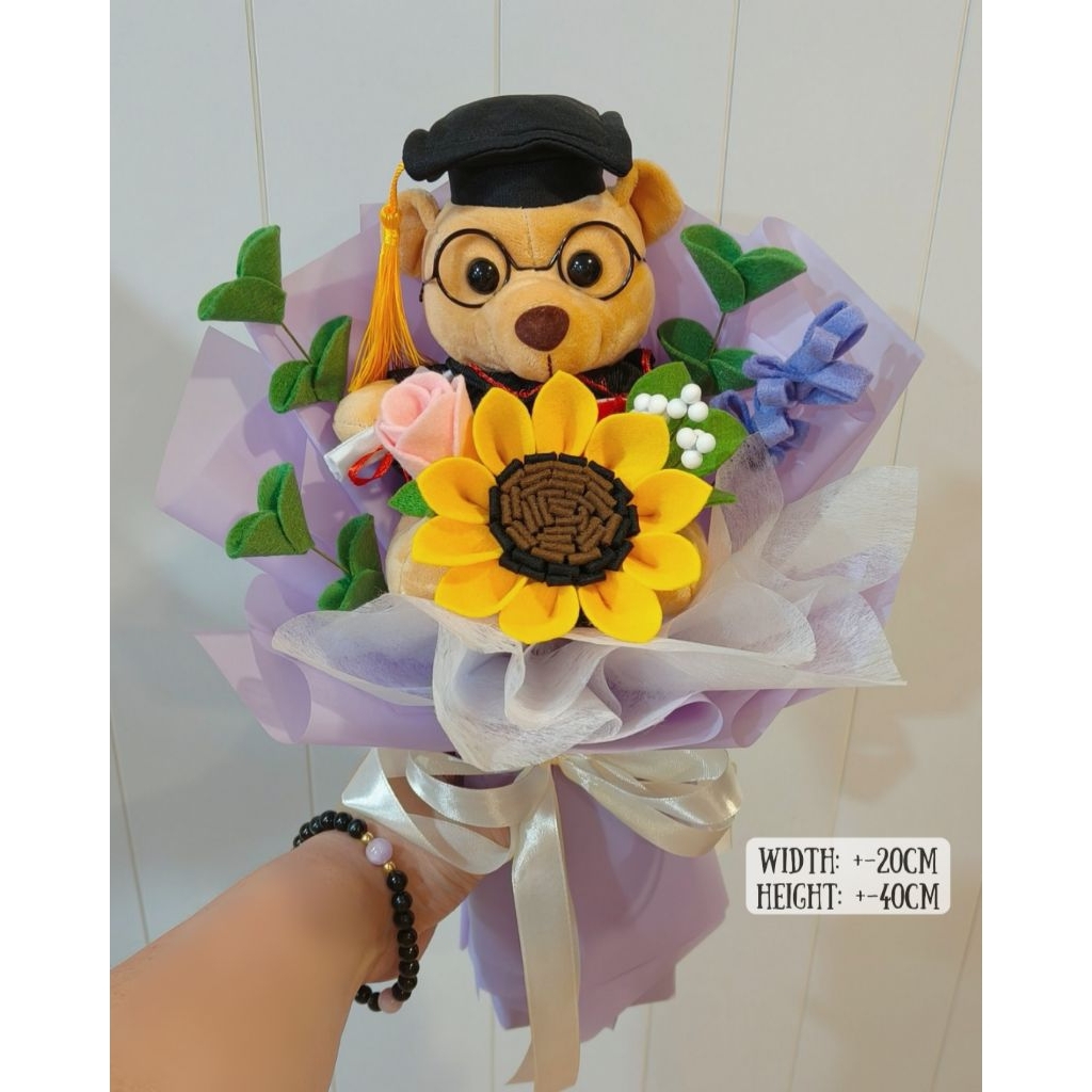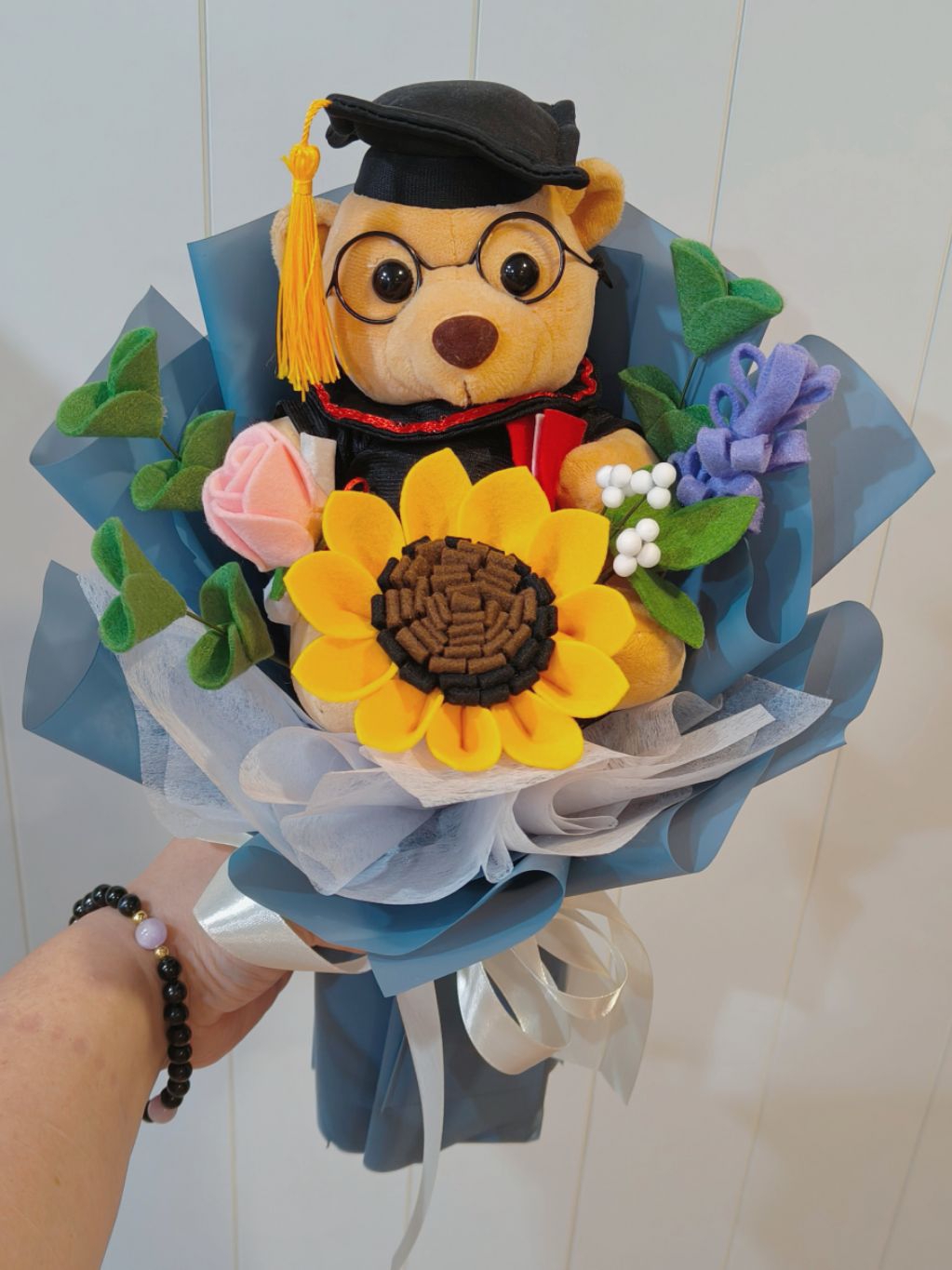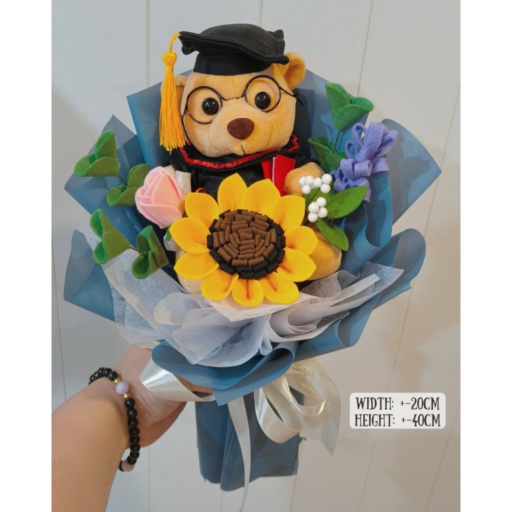 Graduation Bear Bouquet with Felt Sunflower & Flowers | Handmade Gift